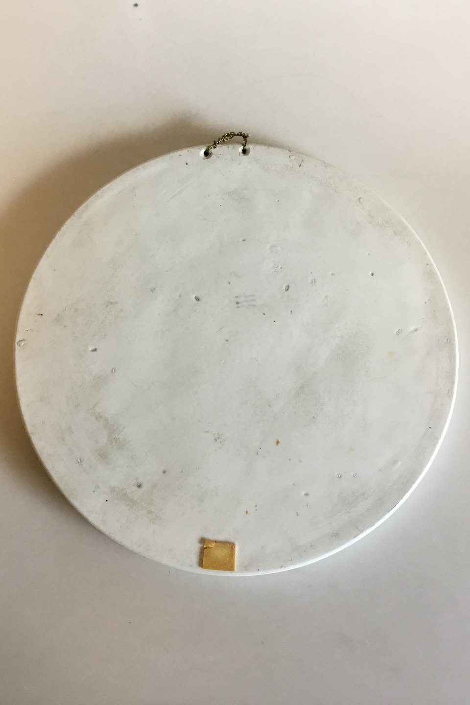 Royal Copenhagen Bisque Plate "Amor complains to Venus for a sting of a Bee" No 84. Copy by O.H.B. Olrik from 1849 after Thorvaldsens original from Rome 1809. Measures 35.5 cm (13.97 inch)