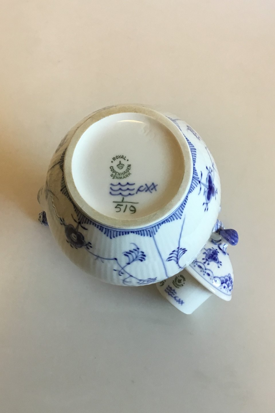 Royal Copenhagen Musselmalet Halvblonde Kaffekande No 519. Måler 24 cm. Reparation på tud
