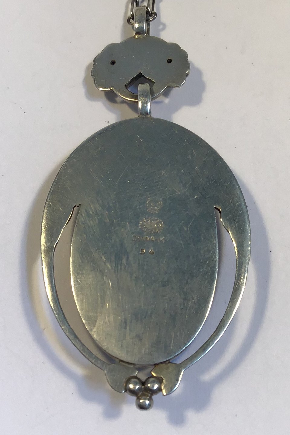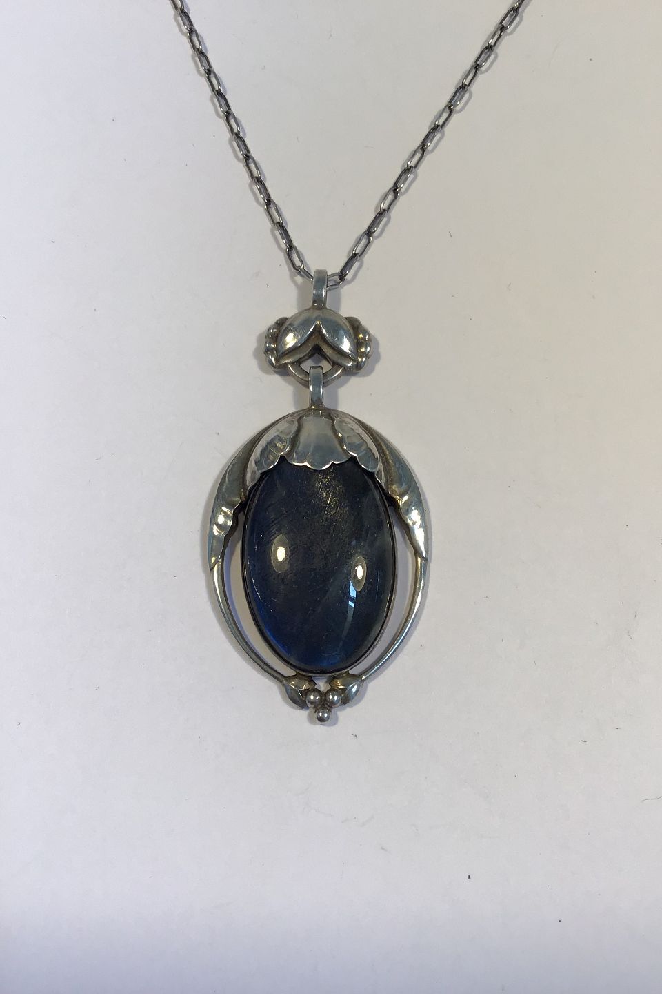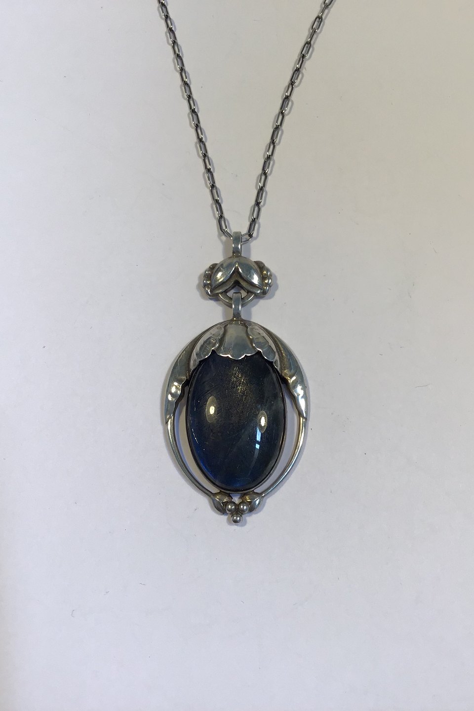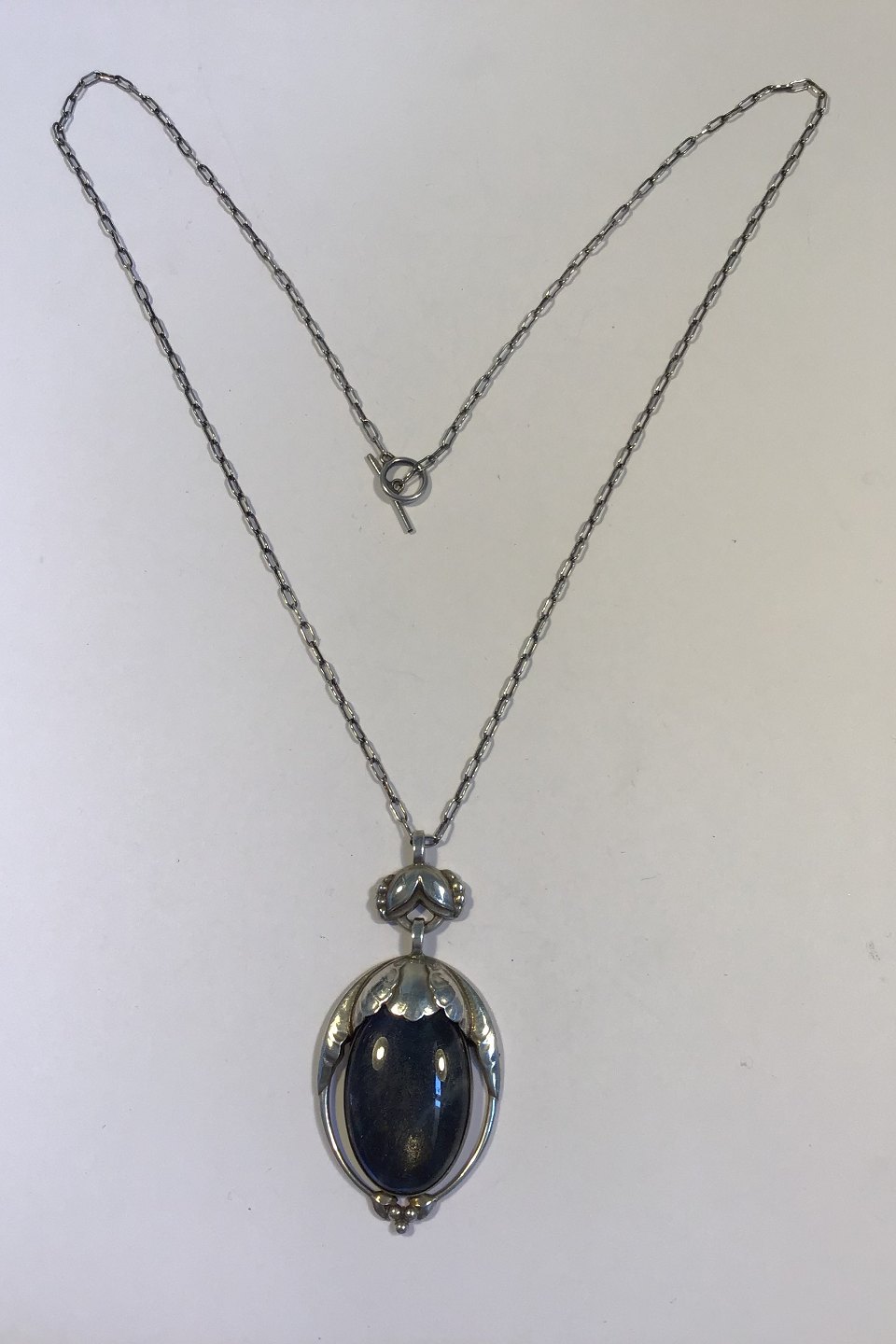 Georg Jensen Sølv Halskæde m Vedhæng No 54 (1915-1927) Labradorit L 6.5 cm Vægt 15 gr (Kæde 60 cm)