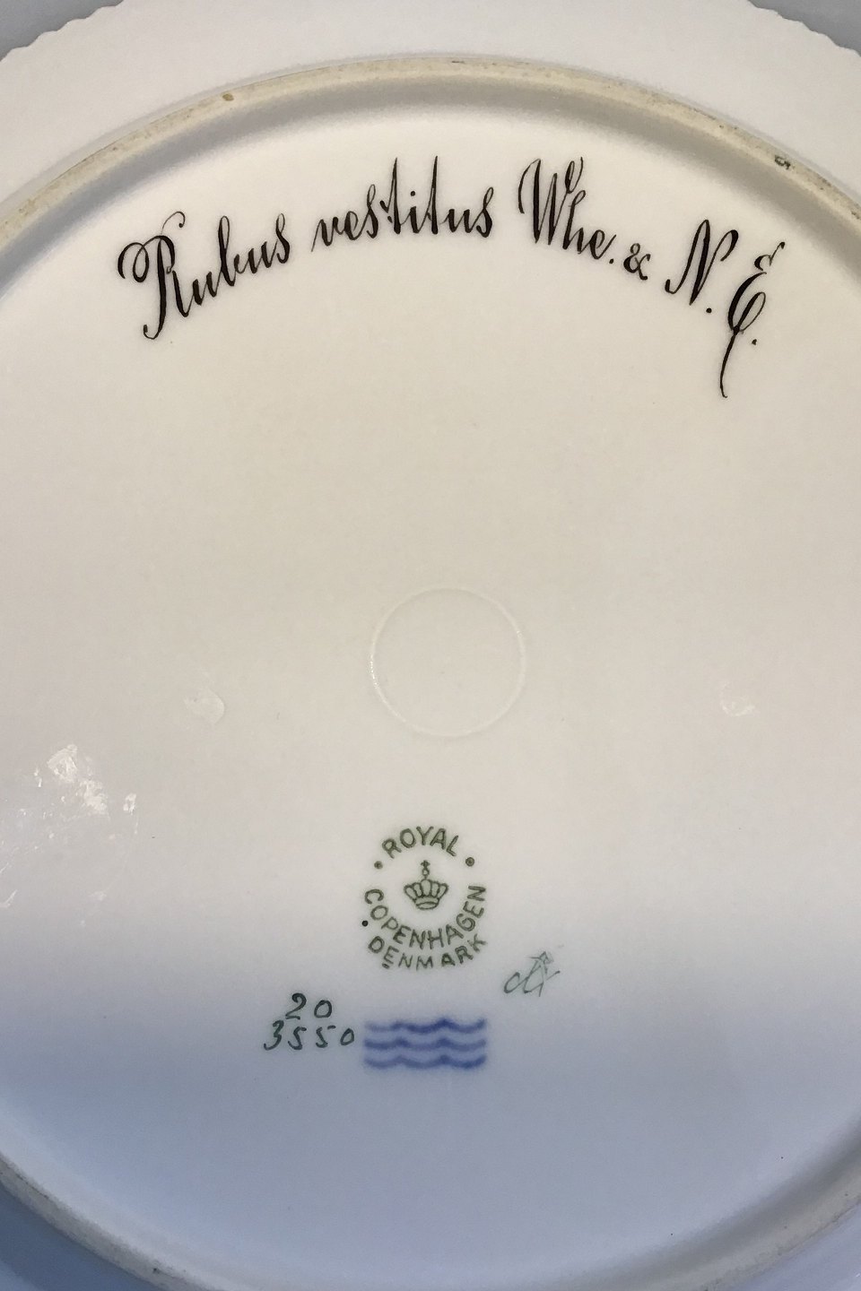 Royal Copenhagen Flora Danica Frokosttallerken No 20/3550 Måler 22 cm. 1. Sortering. Latinsk navn: "Rubus Vestitus Whe et NE."(Rundbladet Brombær)