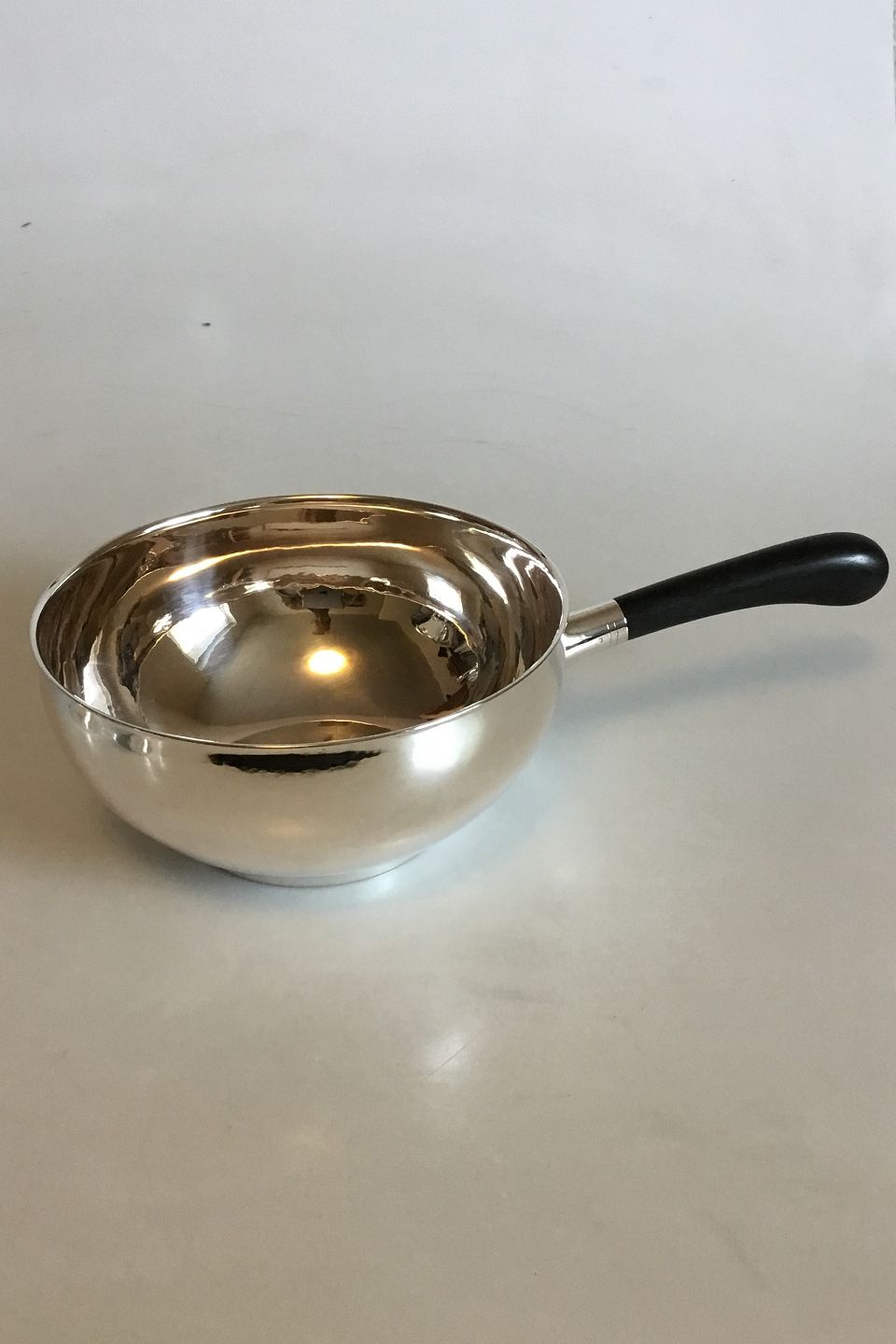Evald Nielsen Sølv Kasserolle med skaft af træ. Måler 28,5 cm. Vejer 329 gram