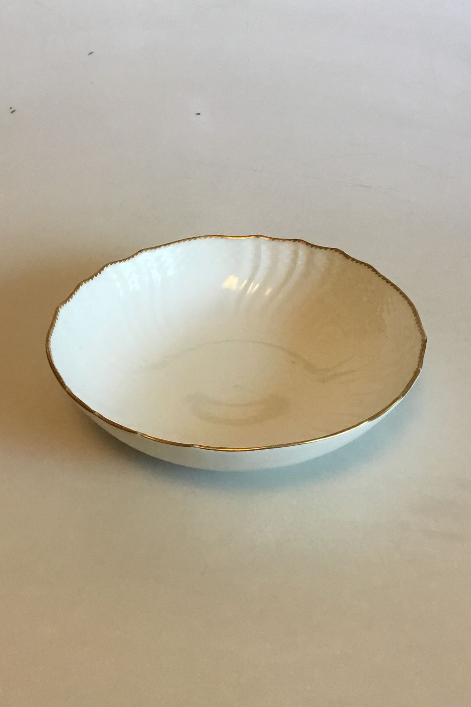 Royal Copenhagen White Curved with serrated Gold edge(Pattern 387/ Josephine) Round Bowl No 1518. Measures 21 cm / 8 17/64 in.
