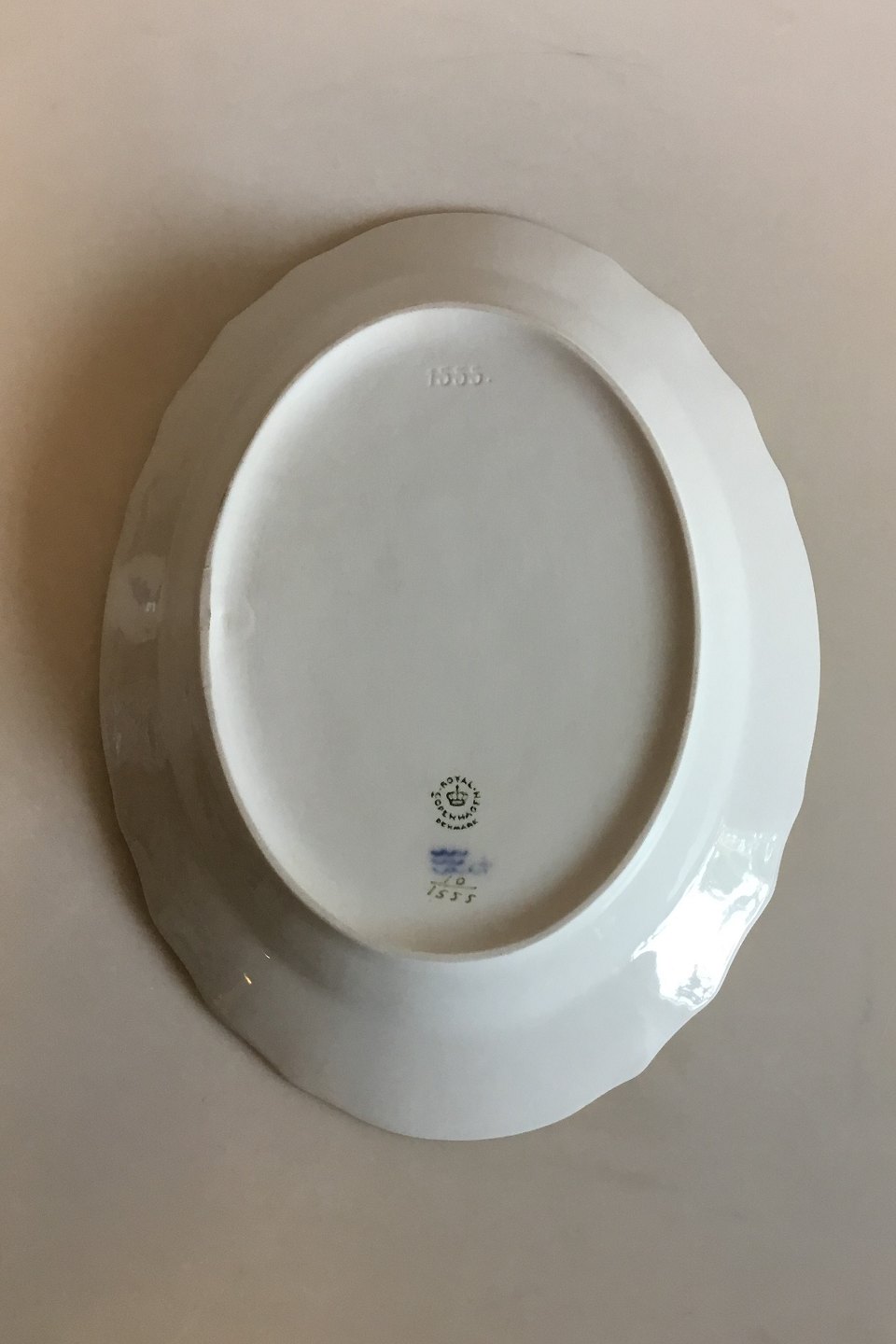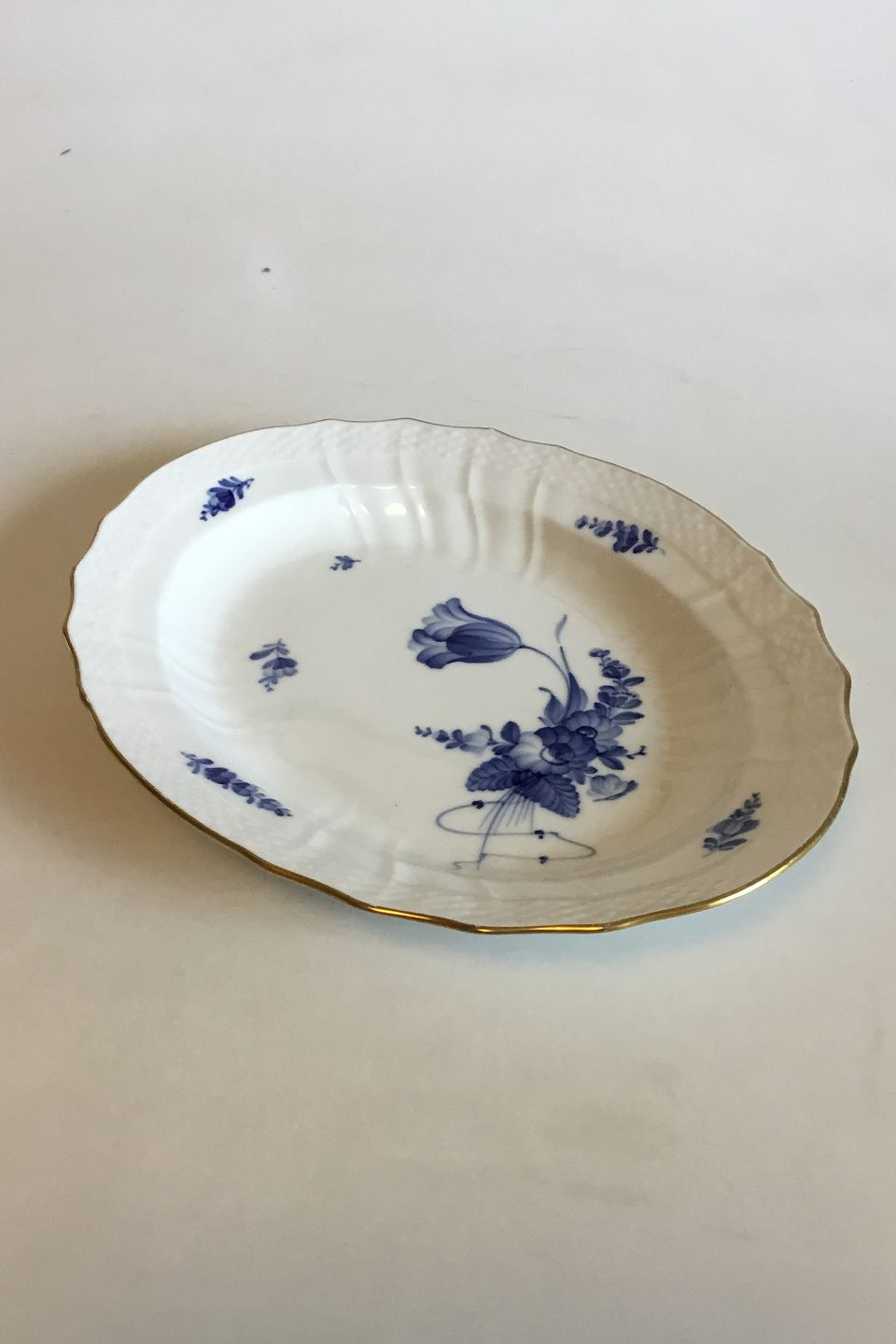 Royal Copenhagen Blue Flower Curved with Gold Oval Dish No. 1555. Measures 31 cm / 12 13/64 in. x 23.5 cm / 9 1/4 in.
