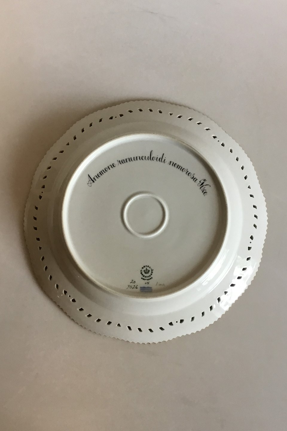 Royal Copenhagen Flora Danica Tallerken med gennembrudt kant No 20/3526. Måler 27 cm. Latinsk tekst: Anemone ranunculoidi nemorosa Kze. Fra 1966