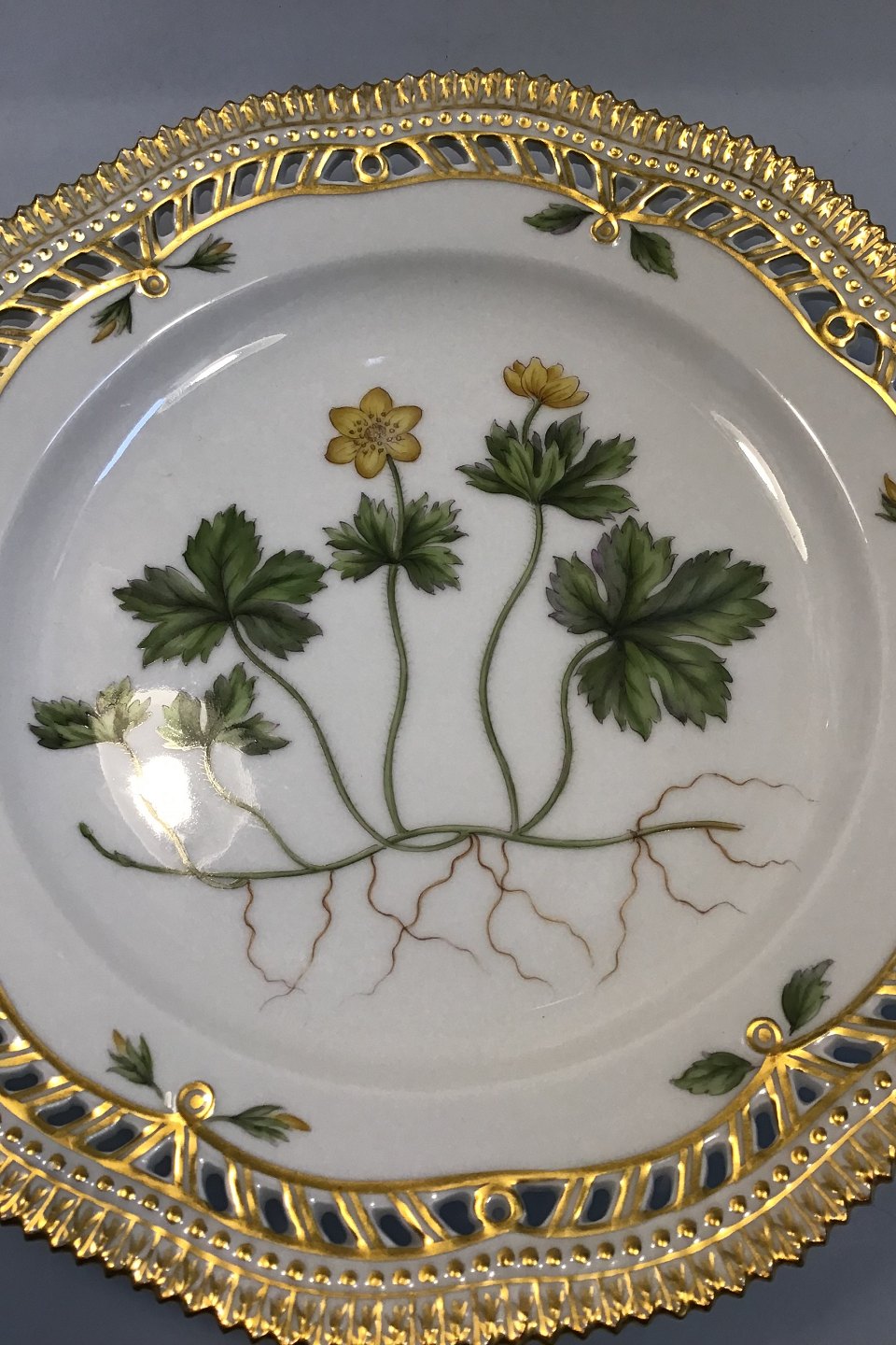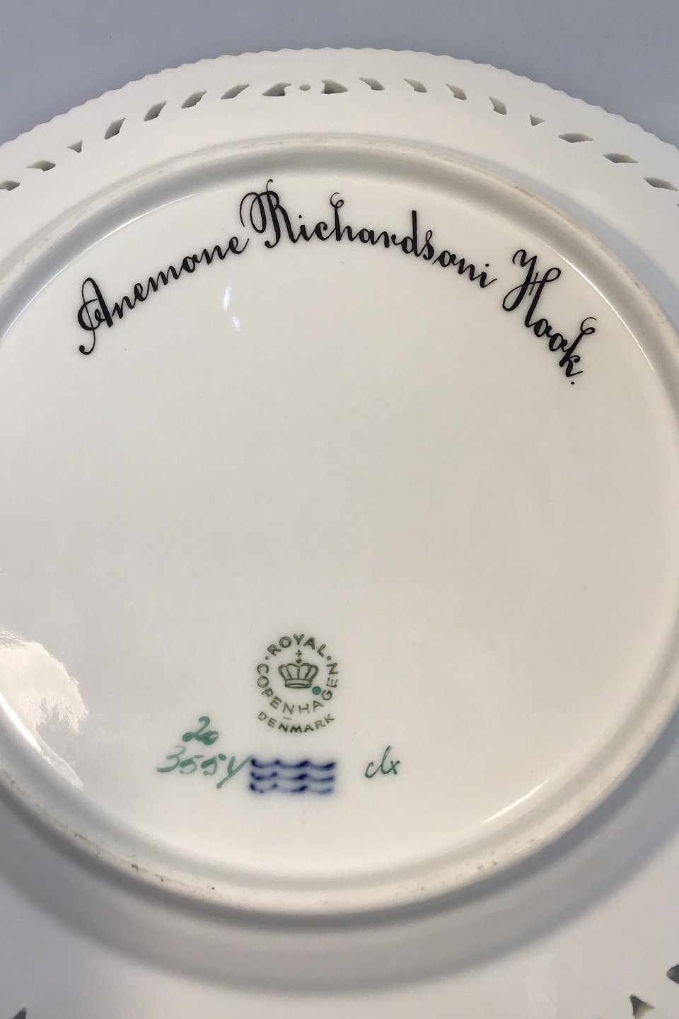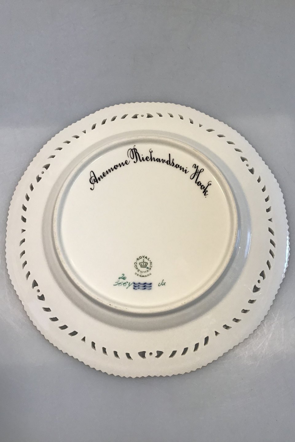 Royal Copenhagen Flora Danica Luncheon Plate No 20/3554 with Pierced Border. Latin Name: Anemone richardsoni Hook (Yellow thimbleweed). Measures 23 cm (9 1/16"). 1st Quality.