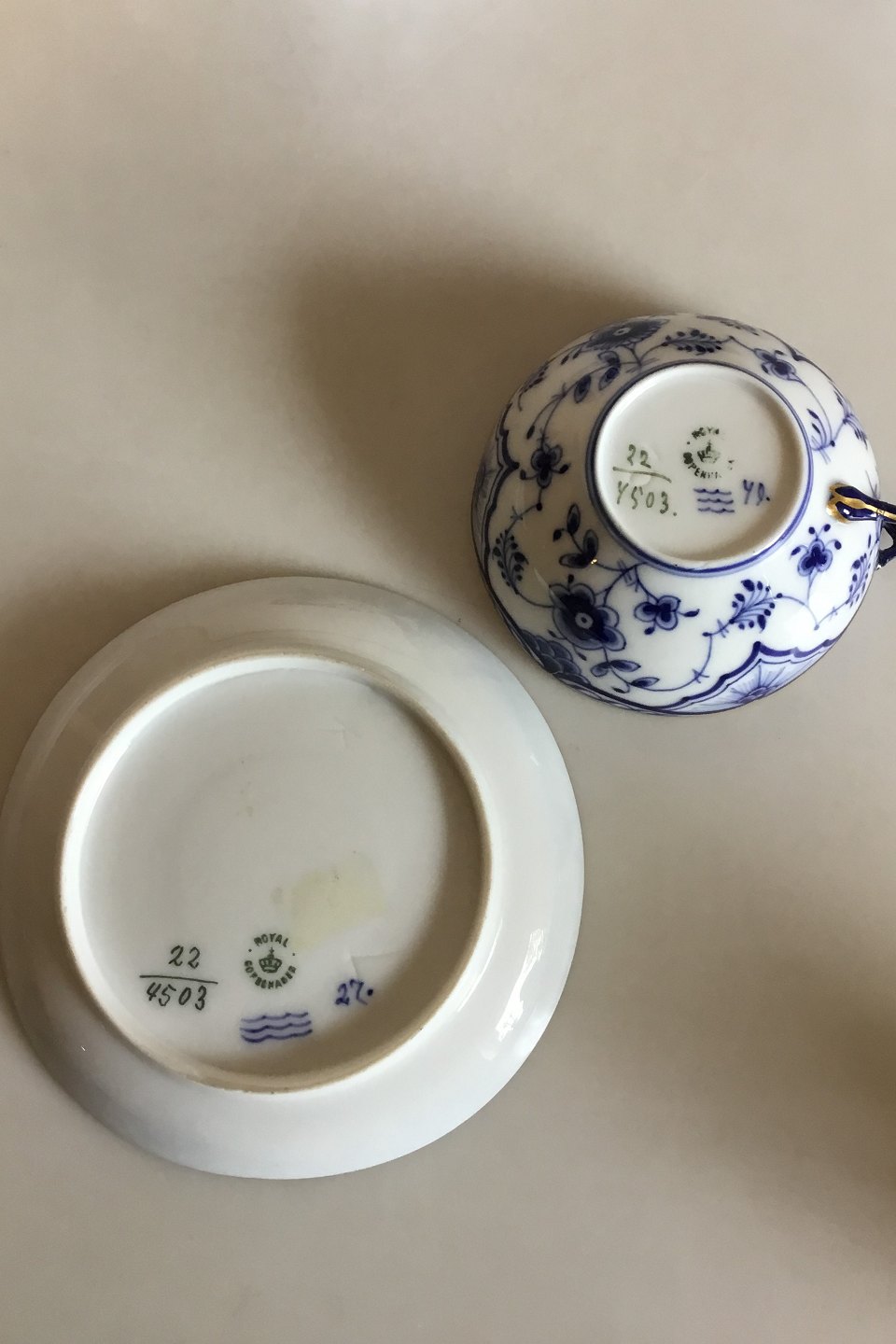 Two Cups with Saucer No 4505, measures Cup: 3.6 cm / 1 27/64 in. x 8 cm / 3 5/32 in. Saucer: 11 cm / 4 21/64 in. One Cup with repair