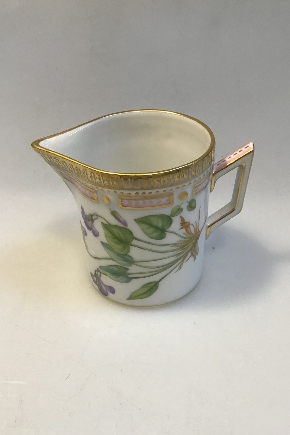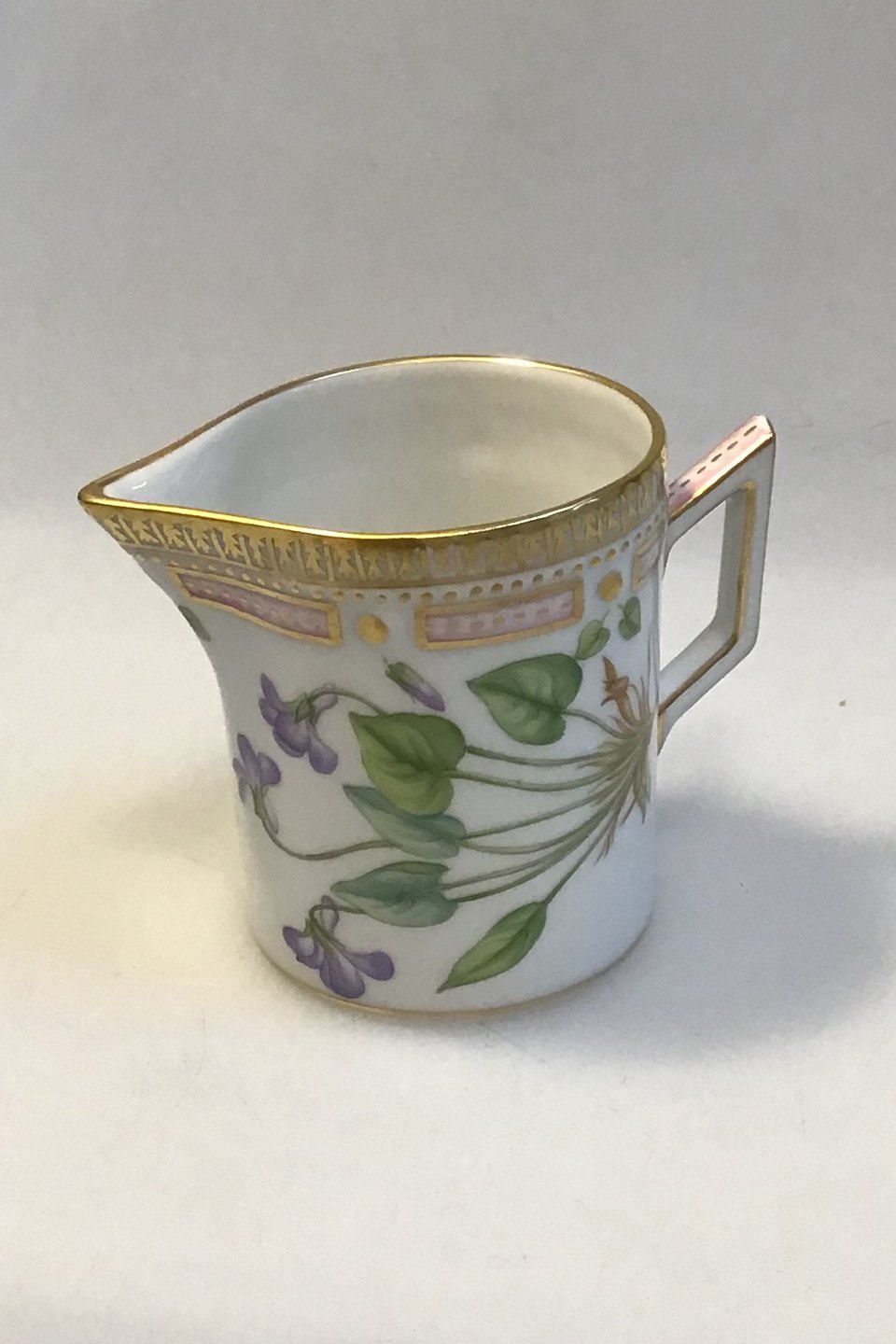 Royal Copenhagen Flora Danica Creamer No 20/3626 or 394 Latin name: Viola umbrosa Fr.(Viola/Violet) Measures 7 cm (2.75 in)