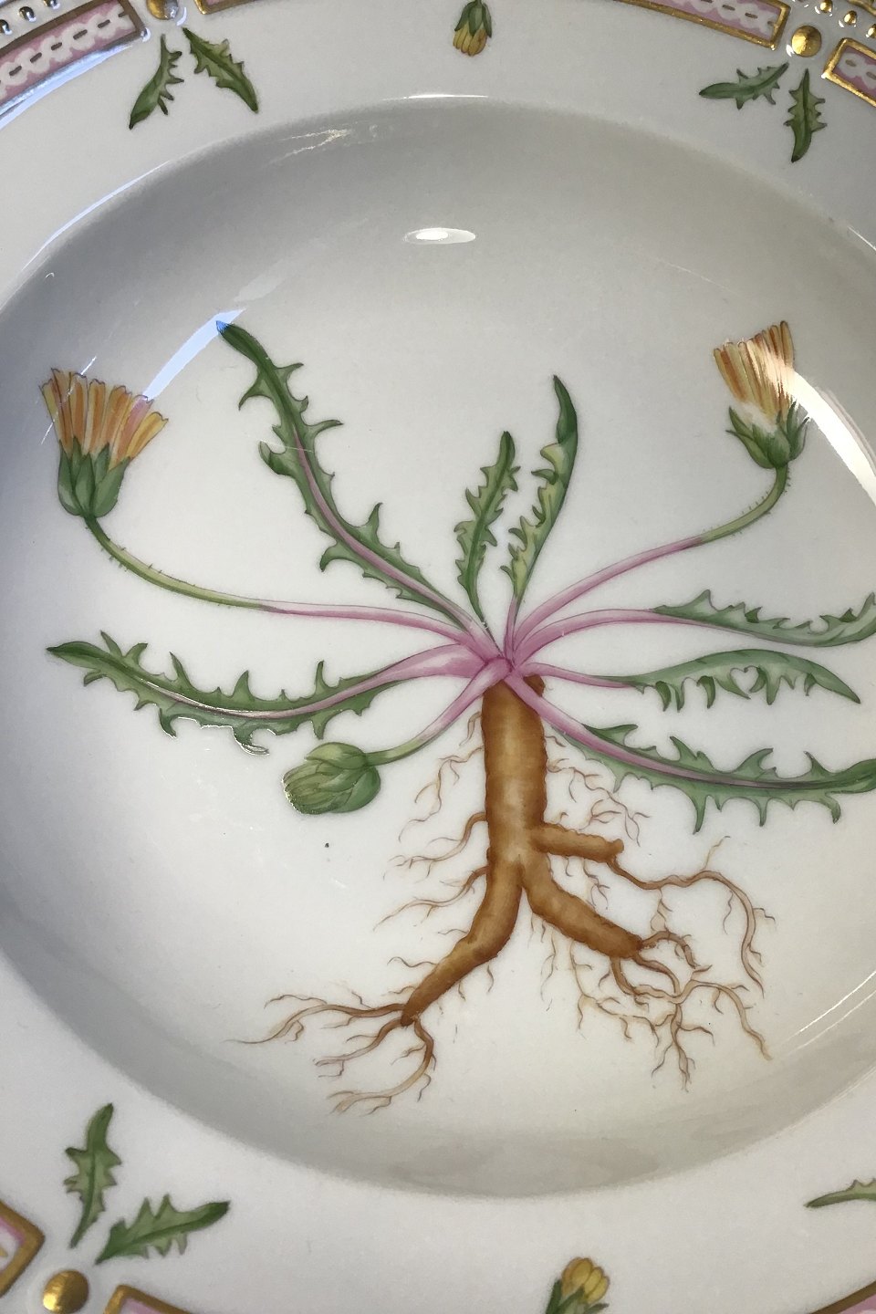 Royal Copenhagen Flora Danica Deep Plate No 20/3545. Latin Name Leontodon obliquus Horn (Dandelion) Measures 25 cm (9.84 in)(with Repair)