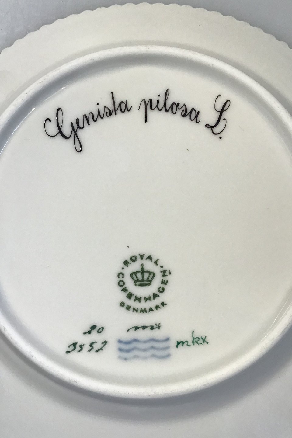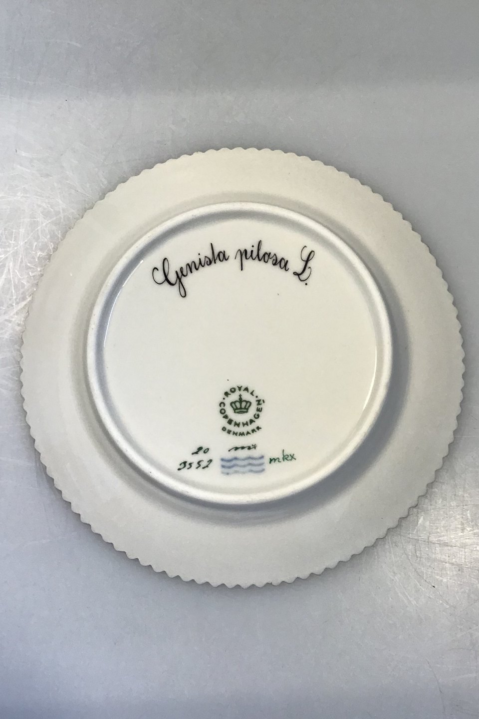 Royal Copenhagen Flora Danica Kagetallerken No 20/3552. Latinsk Navn: Genista pilosa L(Håret visse) Måler 14,3 cm