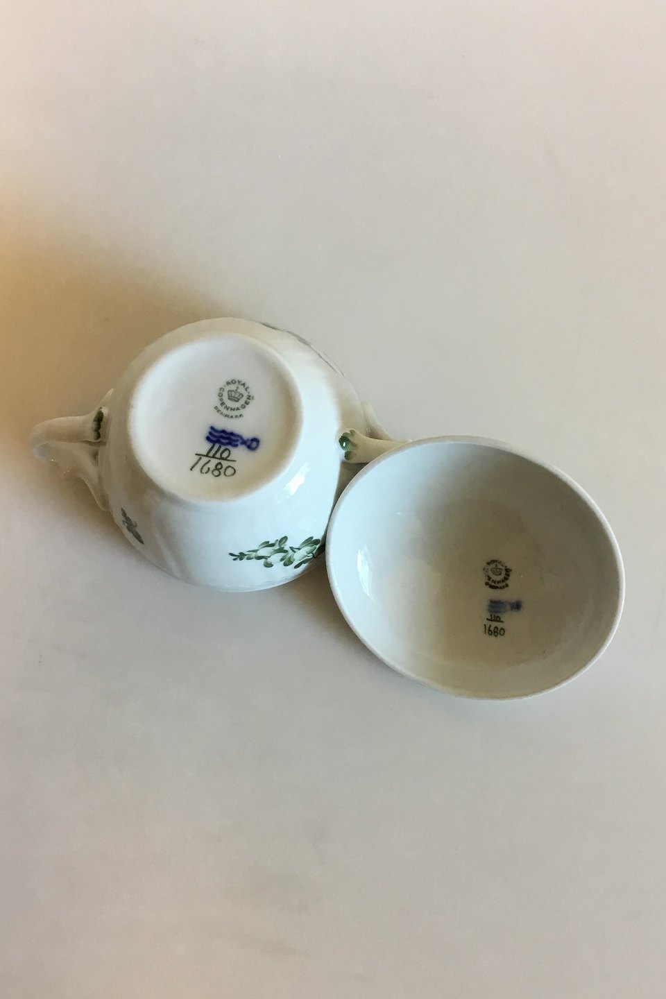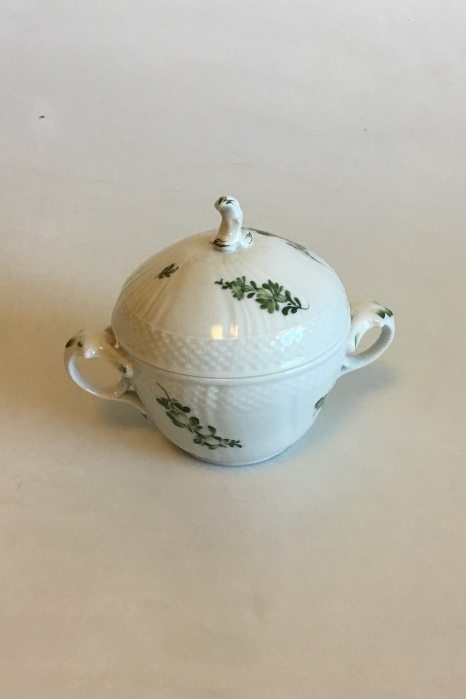 Royal Copenhagen Green Flower Curved Sugar Bowl No 1680. Measures 11 cm / 4 21/64 in. x 14.5 cm / 5 45/64 in.