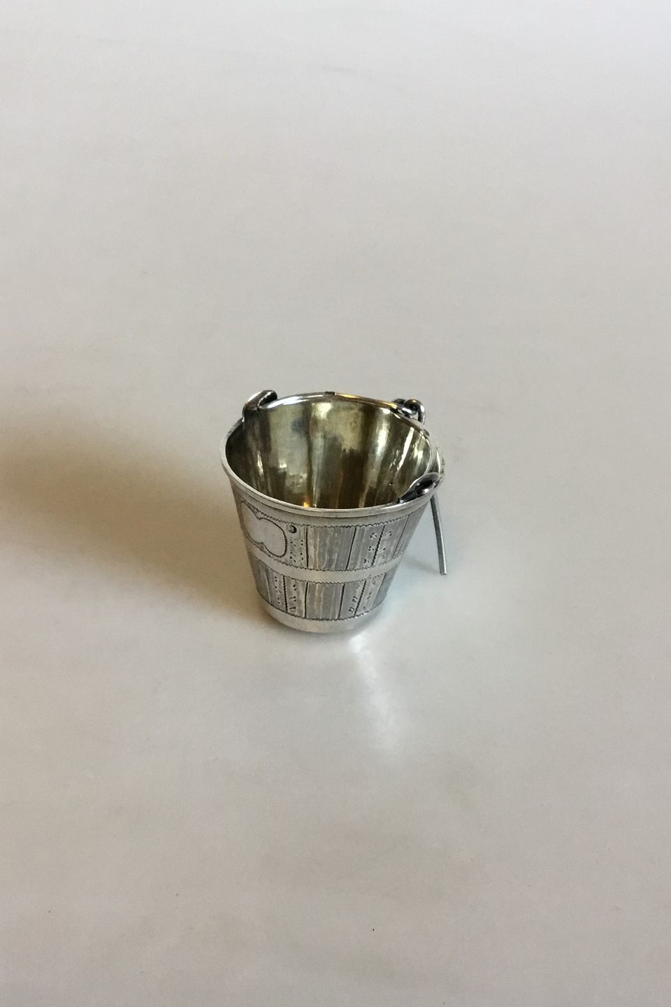 Funny Russian tea strainer formed as a bucket in Silver 84.