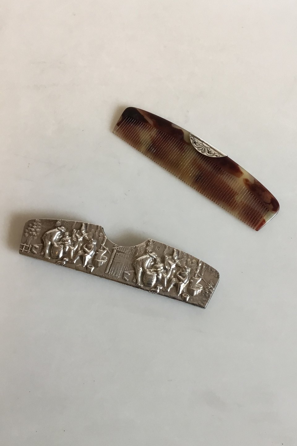Hand Comb with silver holder with motif in relief.