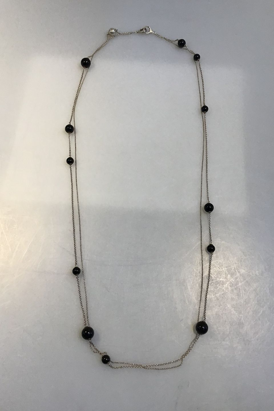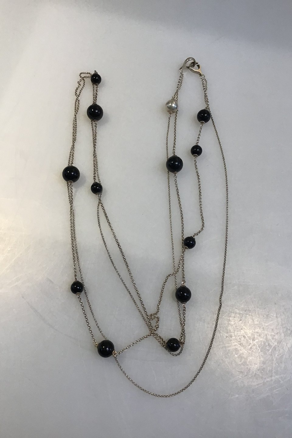Georg Jensen Sterling Sølv & Onyx 2-radet Kugle Halskæde Måler 100 cm Vægt 34.3 gr