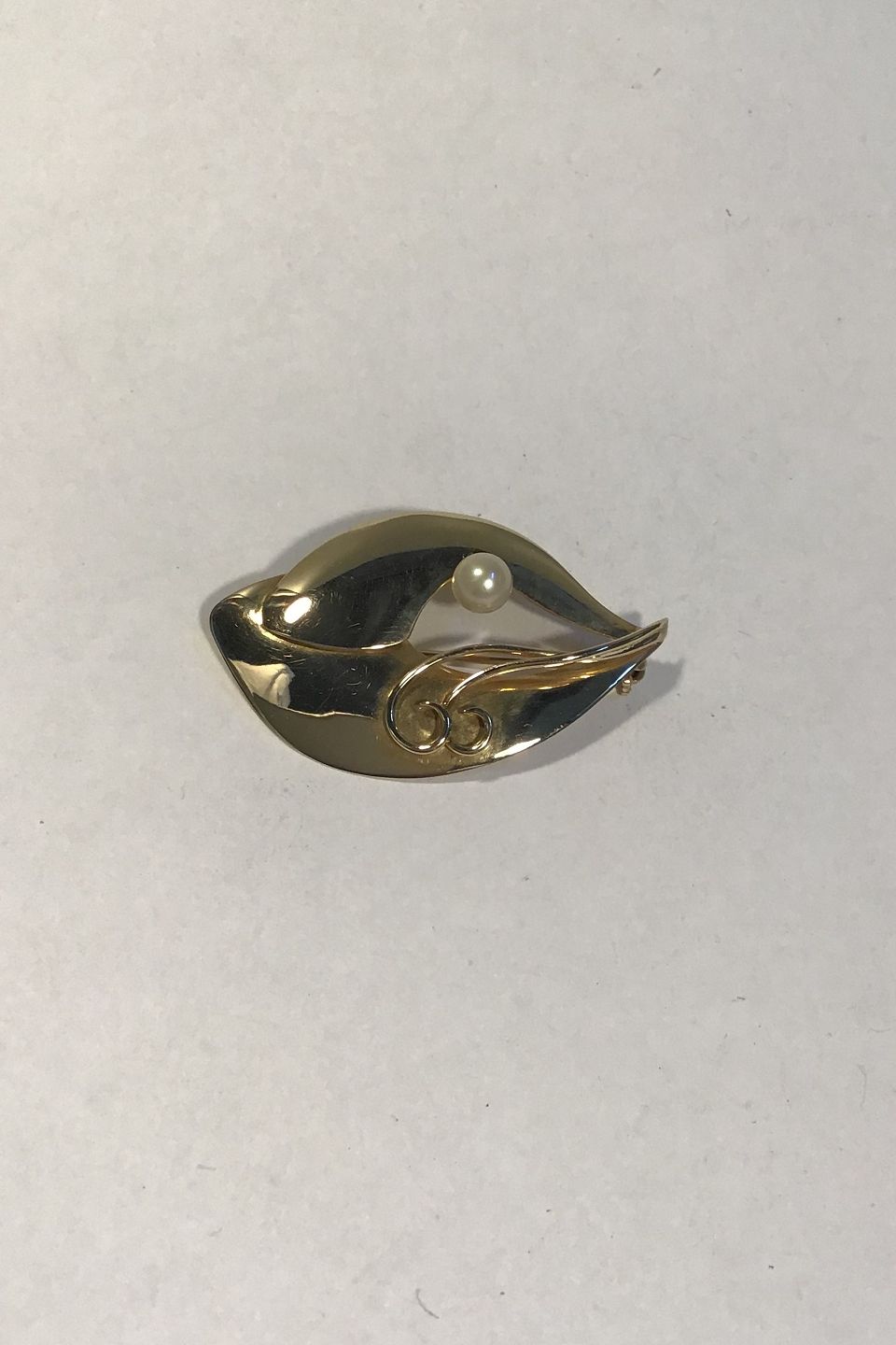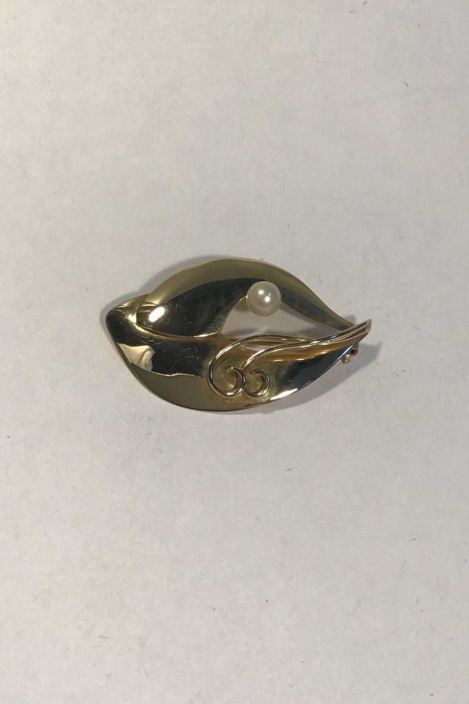Bernhard Hertz 14K Gold Brooch w Pearl Measures 2.8 cm x 4.5 cm(1.10 in x 1.77 in) Weight 7 gr/0.22 oz
