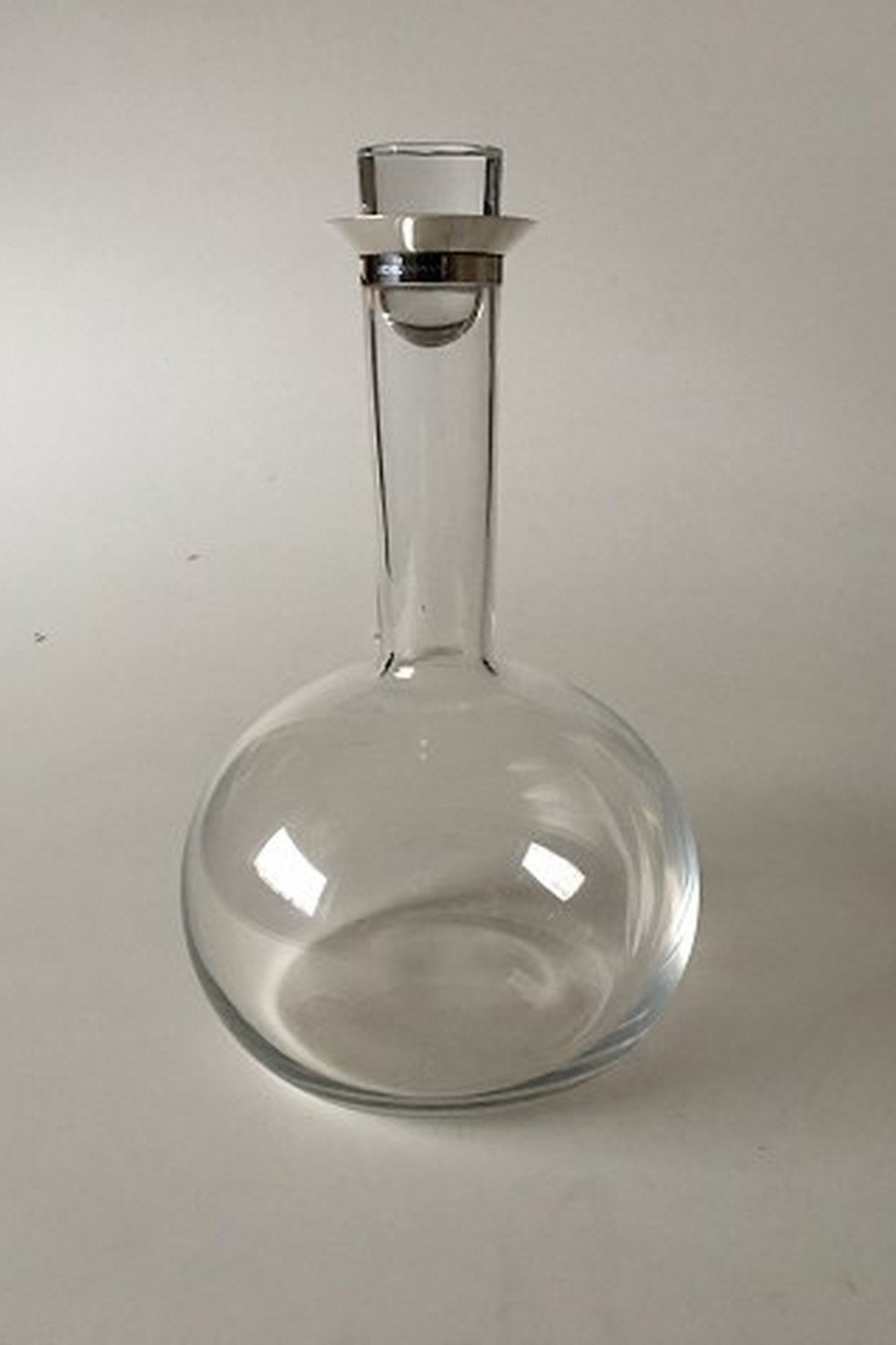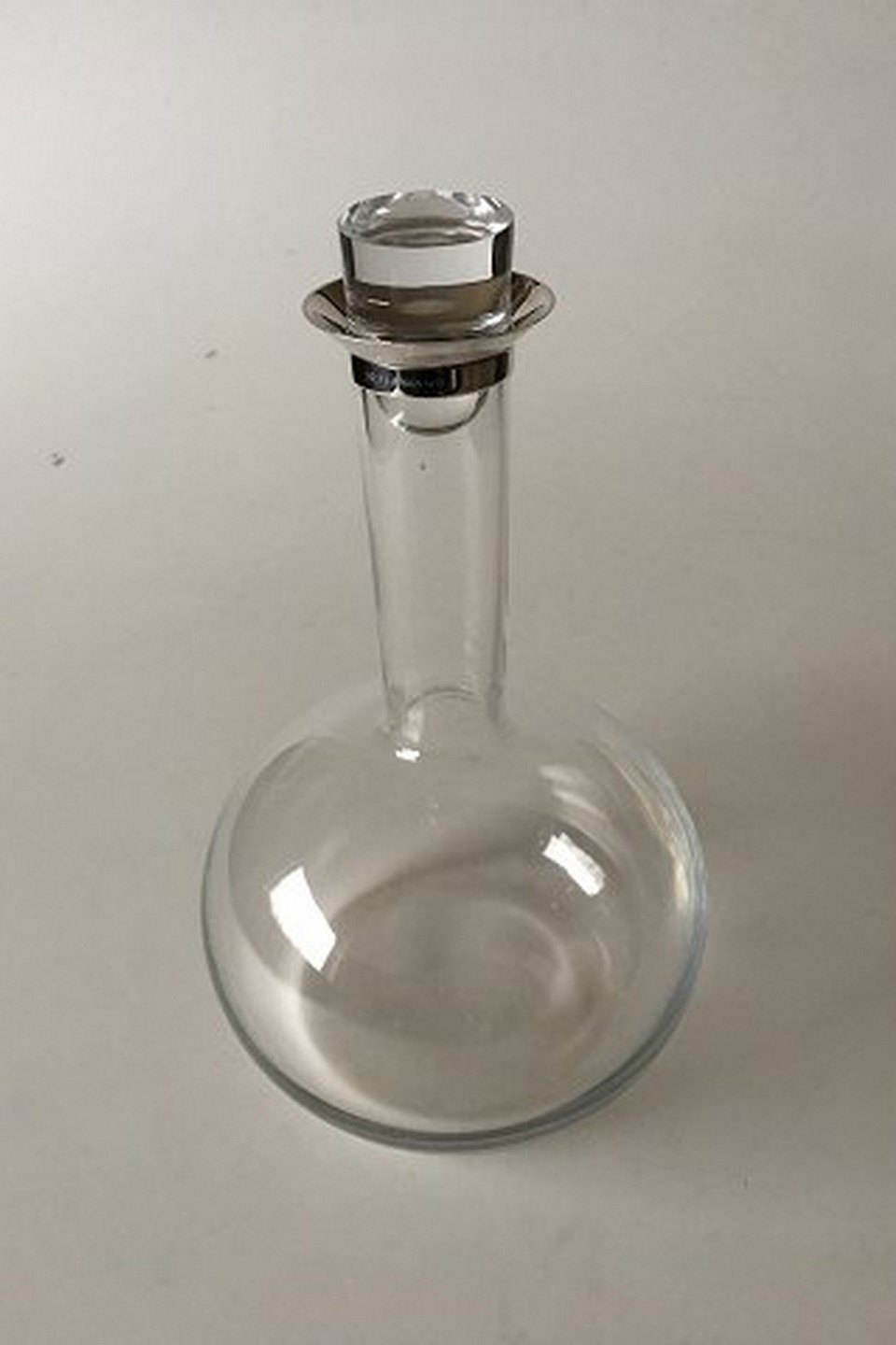 Georg Jensen / Holmegaard Karaffel af Ole Palsby. Glas med Sterling Sølv montering. 25 cm Høj. I fin hel stand.