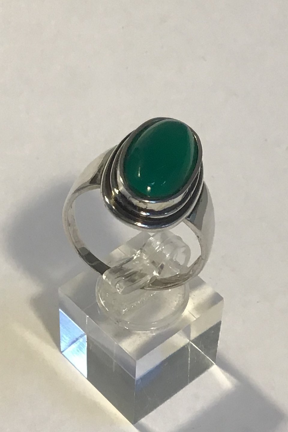 Georg Jensen Sterling Sølv Ring No 47 med grøn Agat Ring str 69 Vægt 8.4 gr