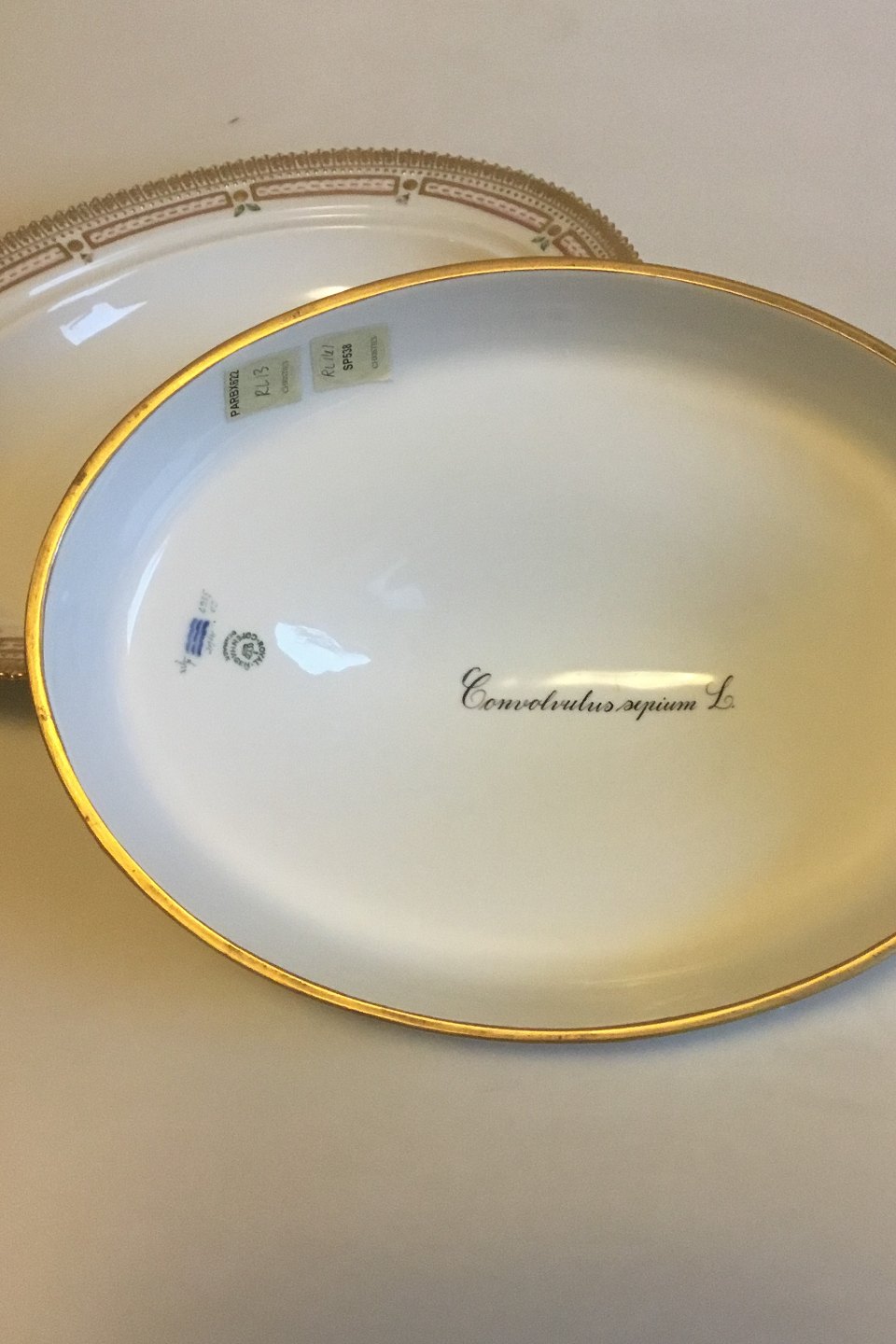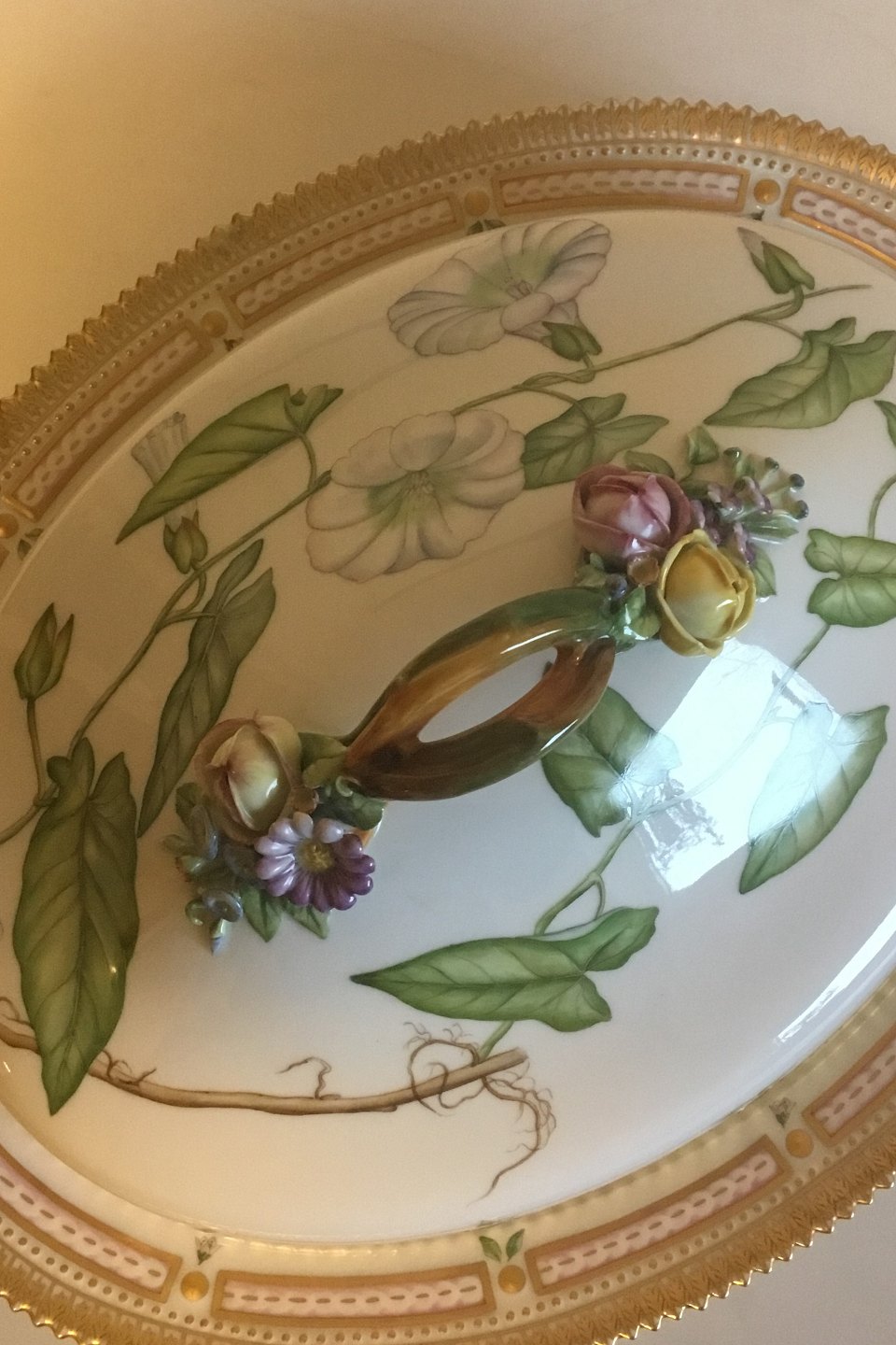 Royal Copenhagen Flora Danica Oval Lidded Dish No 3567. Latin Name: Concolvulus sepium L. Measures 39 cm / 15 23/64 in. x 31 cm / 12 13/64 in.