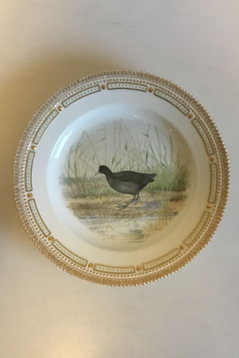Royal Copenhagen Flora Danica Fuglestel Middagstallerken No 240/3549. Latinsk navn: Fulica atra L. Måler 25,5 cm. Afslag af en tak