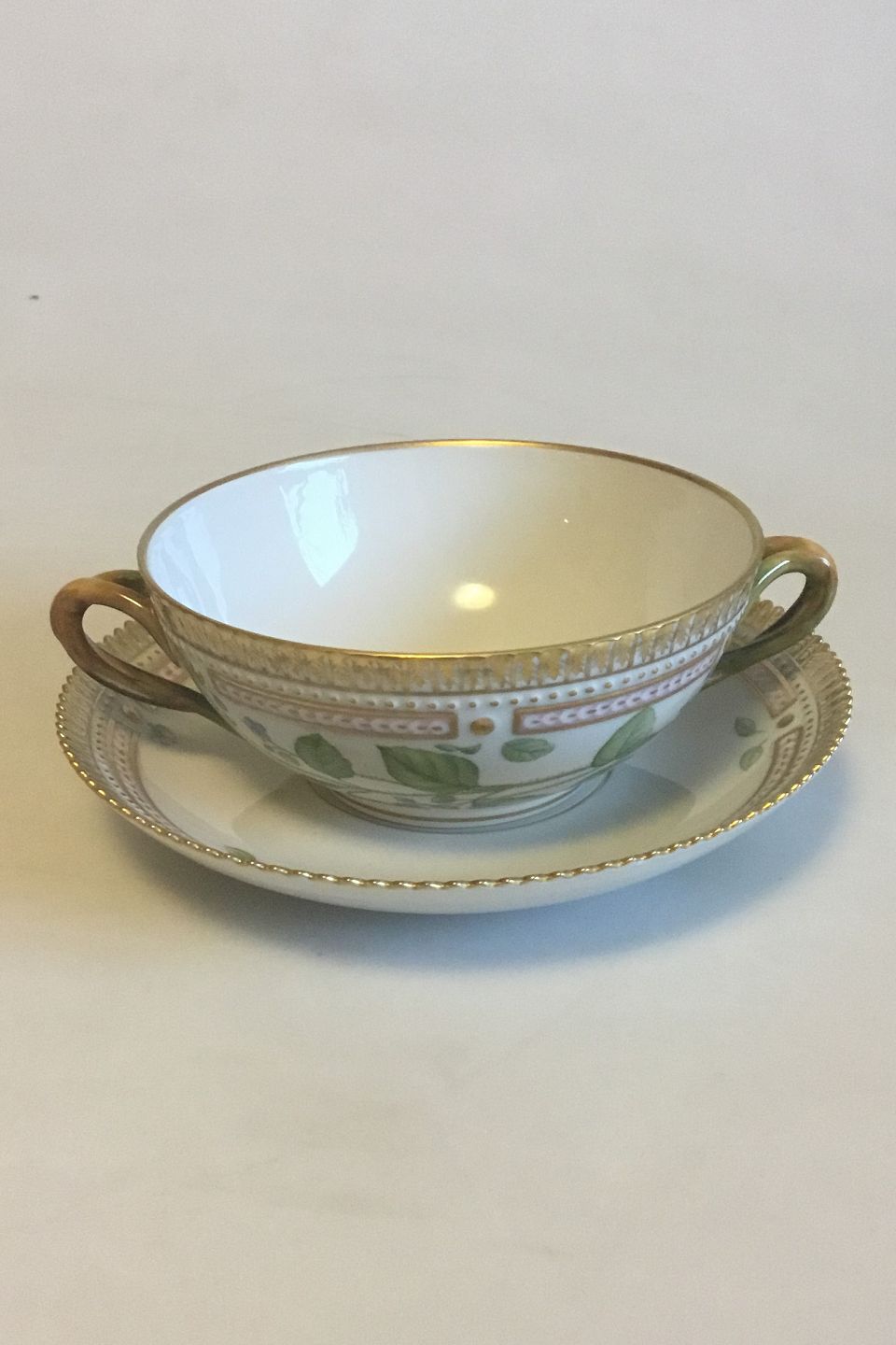 Royal Copenhagen Flora Danica Bouillon Kop med underskål No 20/3612 Latinsk Navn Veronica montane L. Holder 40 cl.