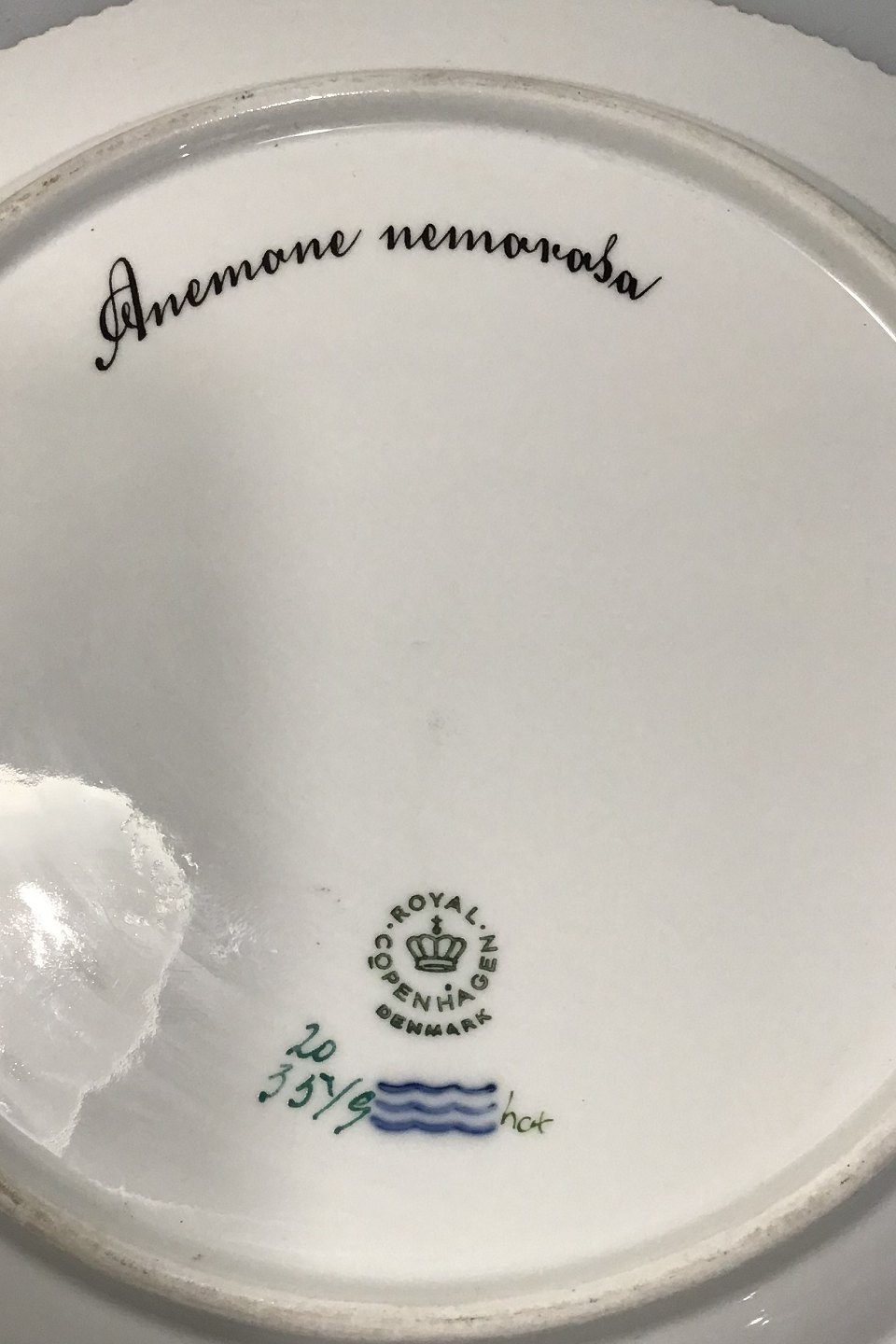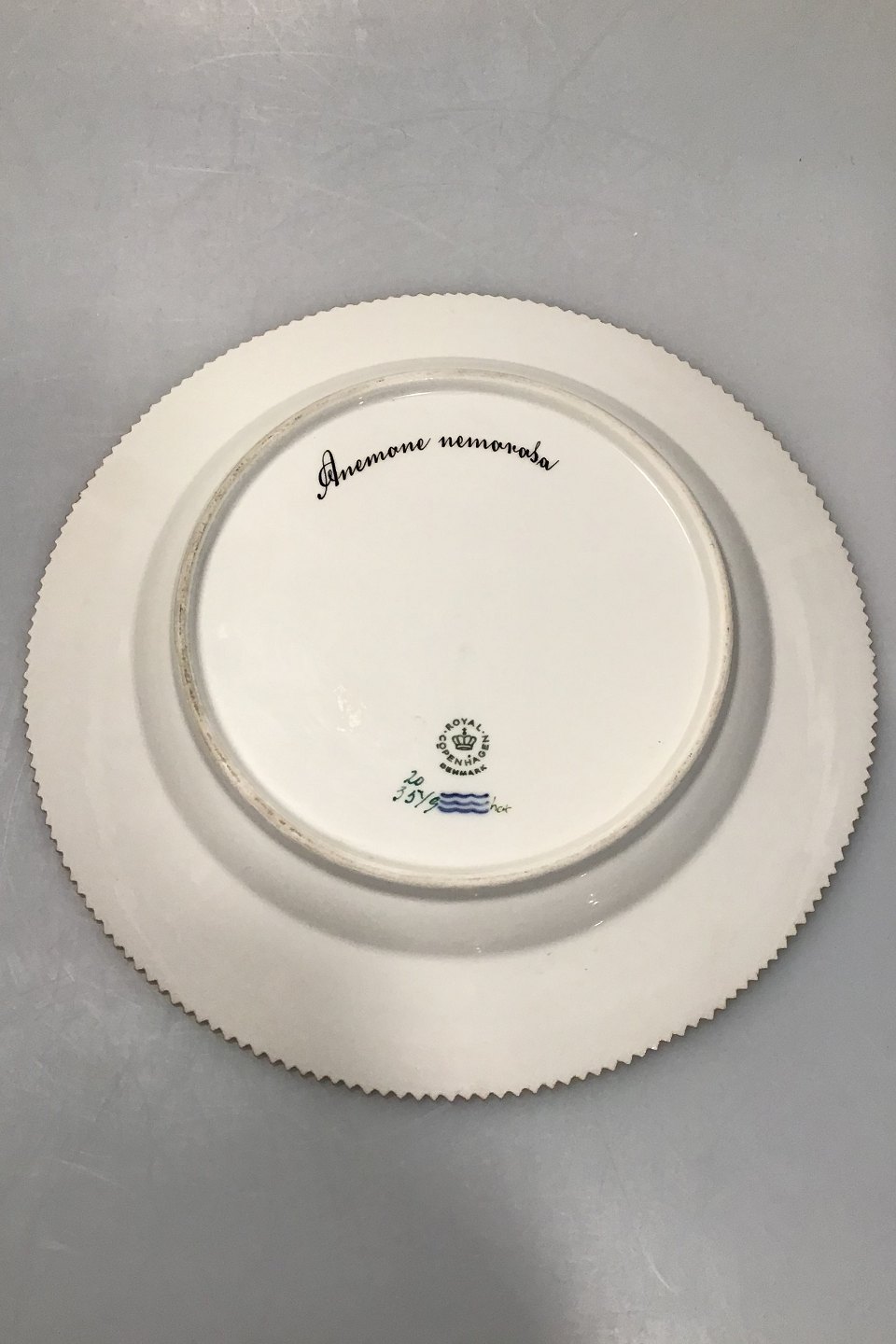 Royal Copenhagen Flora Danica Plate No 20/3549. Latin Name: Anemone nemorosa(Wood anemone, Windflower) Measures 25.8 cm / 10 5/32 in.