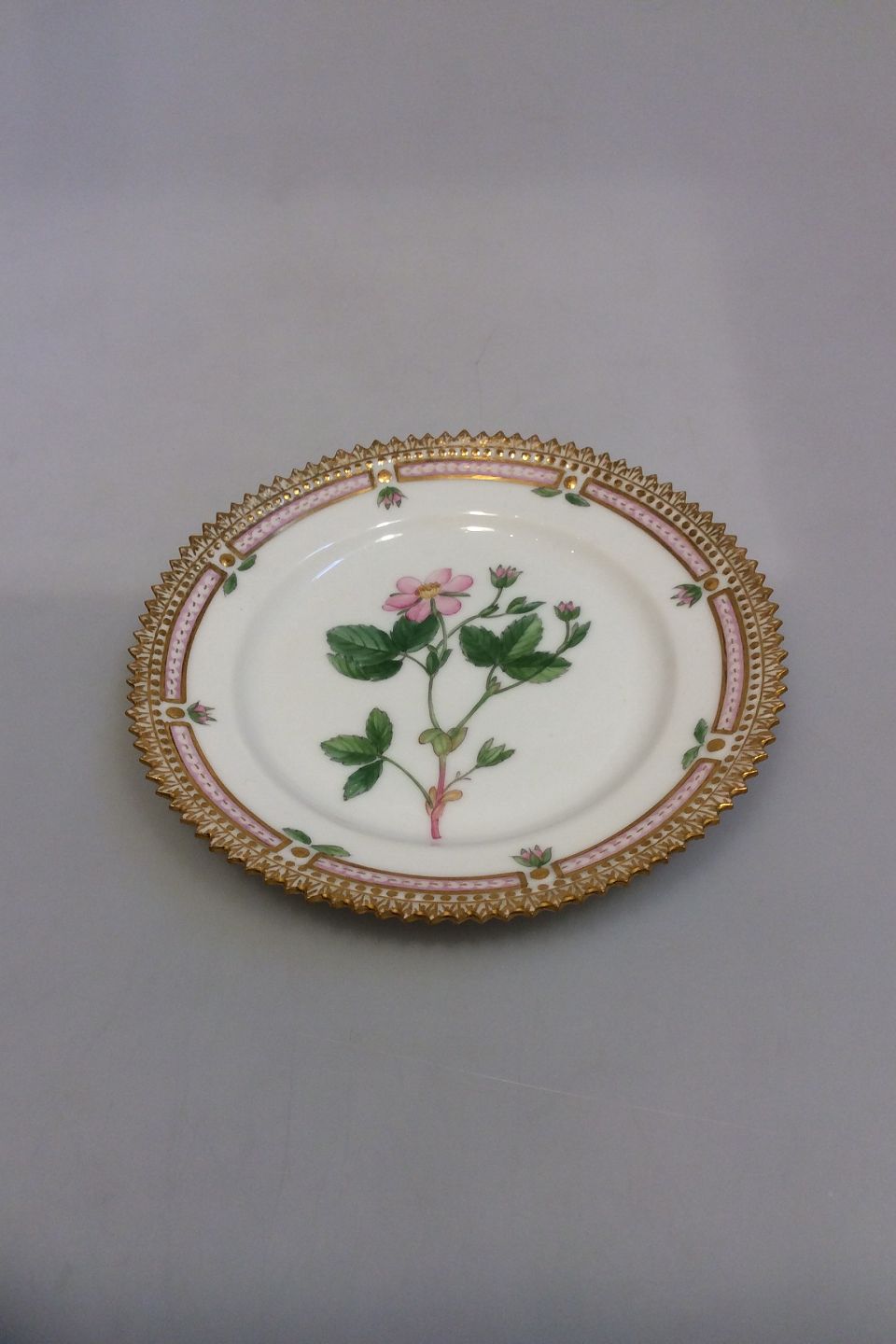 Royal Copenhagen Flora Danica Kagetallerken No 20/3552. Latinsk tekst: Rubus arcticus L. Måler 14,3 cm.