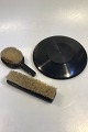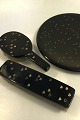 A Michelsen Erik Herløw "Amico" Toilet Garniture Bakke og to børster Sortlakeret træ med sølvindlæg Måler Bakke 23.5 cm Børsterne begge 18.5 cm (Små afskalninger)