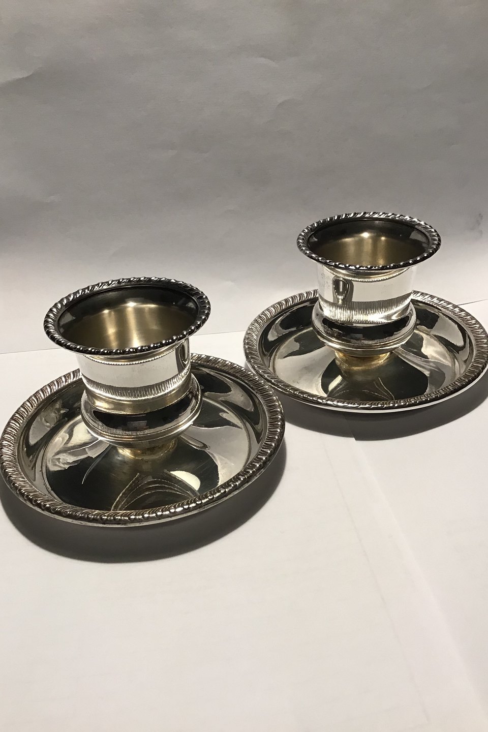 KMK Sterling Silver Candlesticks No 507 Measures H 7 cm(2 3/4 in) Accomodates candles with diameter of 5 cm (2 in) Combined Weight 185 gr/6.56 oz