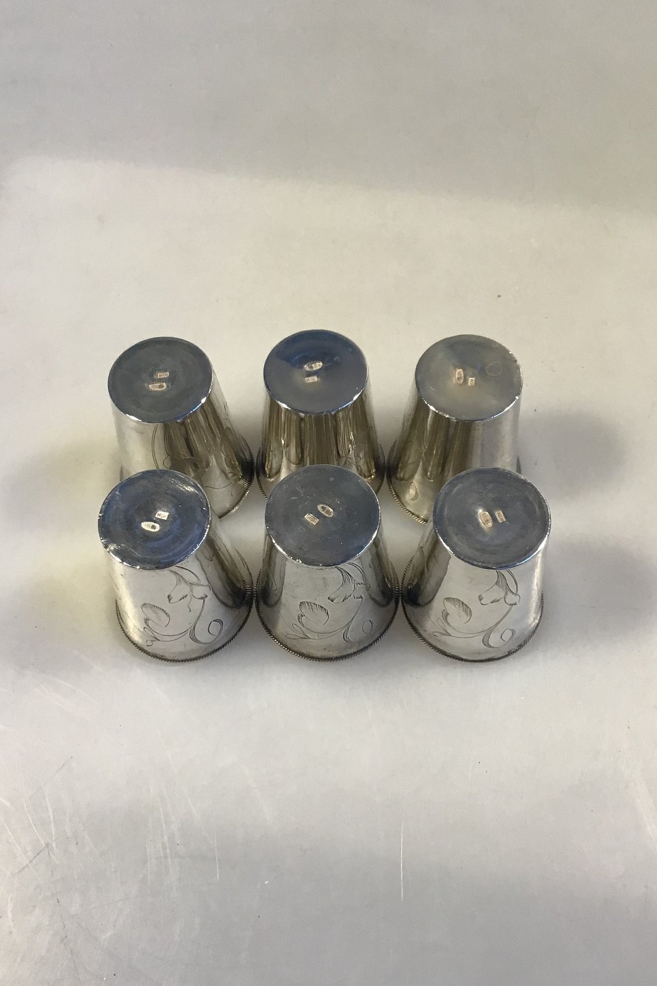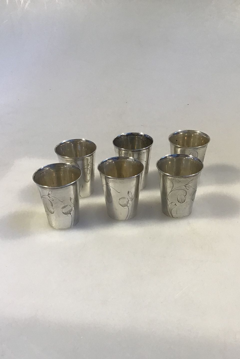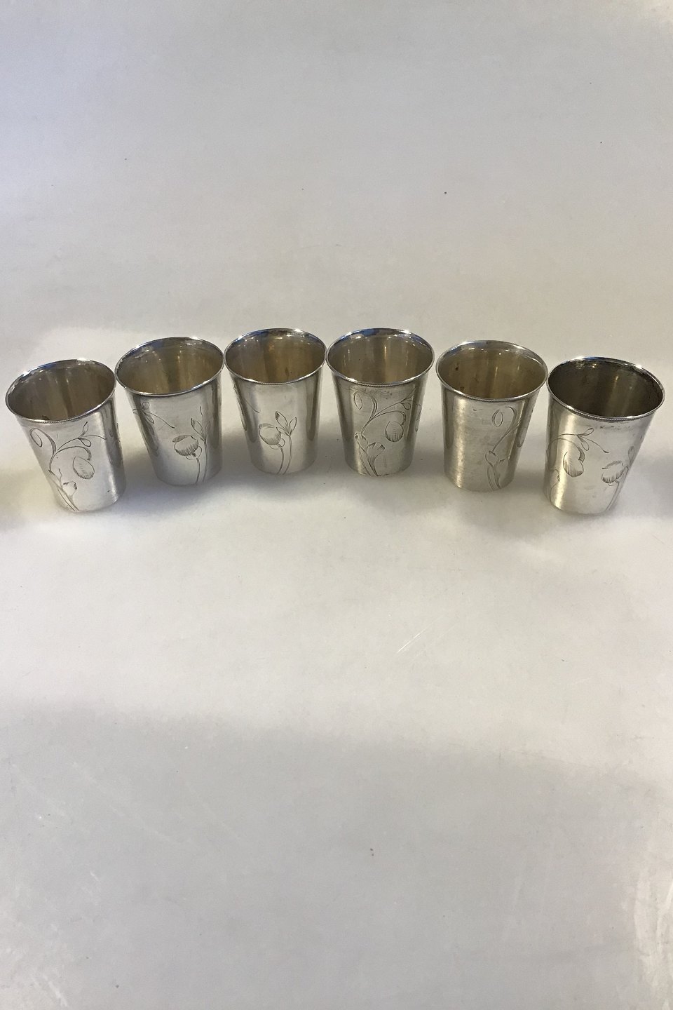 Russisk Sølv Drikkebæger sæt (6) Blomster dekoration Måler 4.5 cm Samlet vægt 99 gr(Gravering AF 24/11 12)