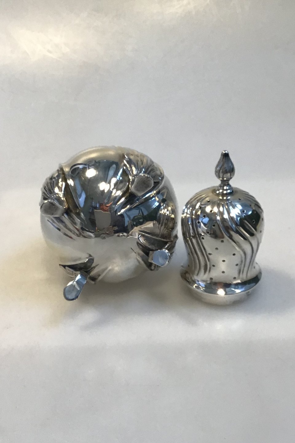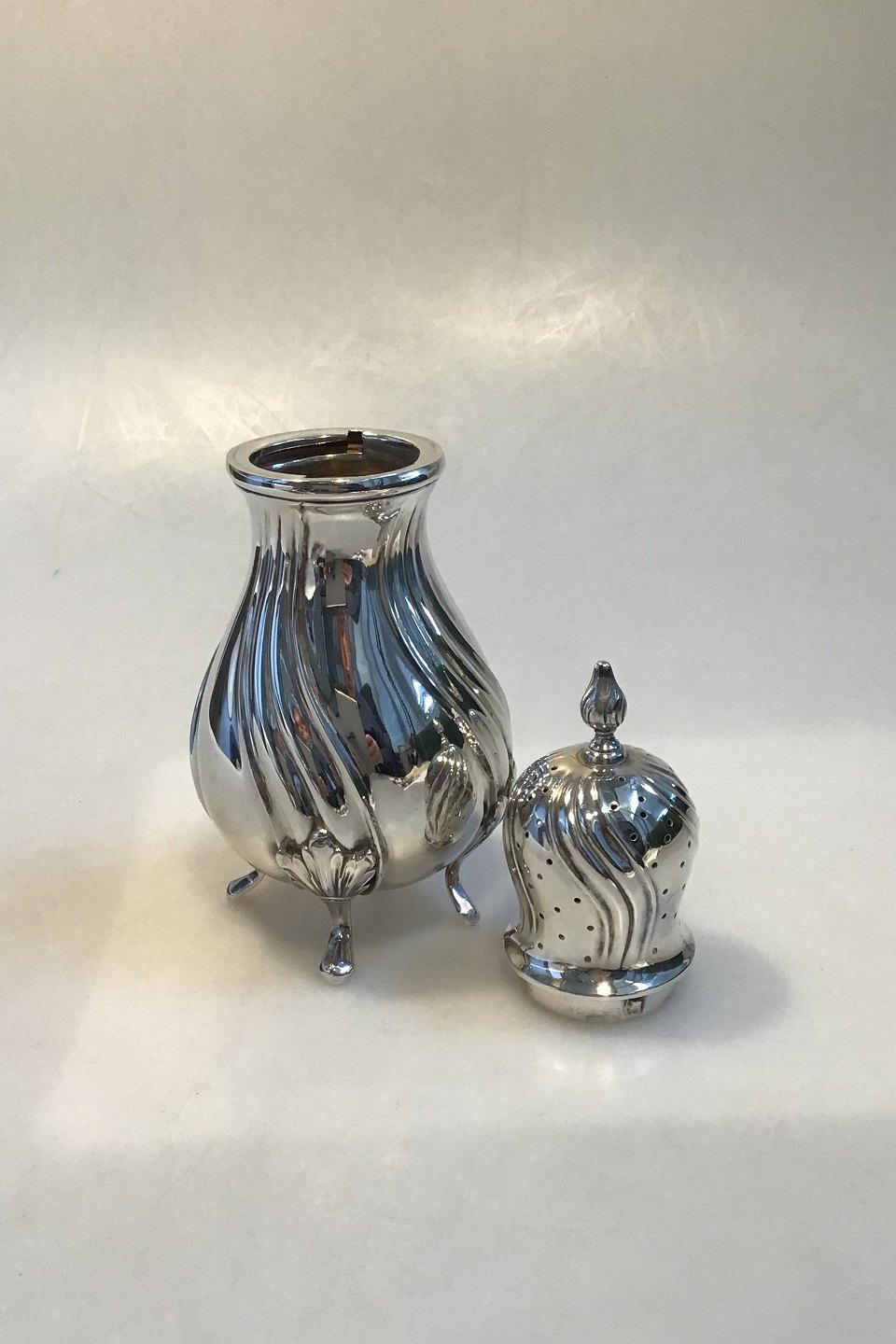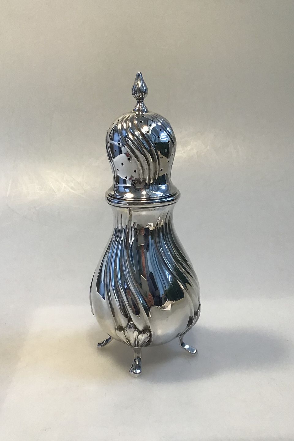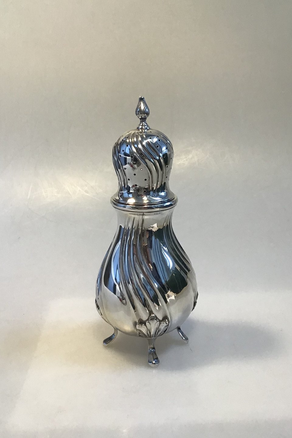 Silver Sugar Caster 1932 MeasuresMeasures 21 cm(8 1/4 in) Weight 253 gr/ 8.92 oz Swedish Import Hallmarks Dents and skewed foot