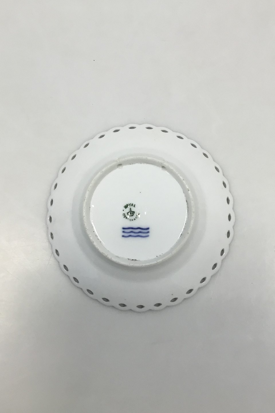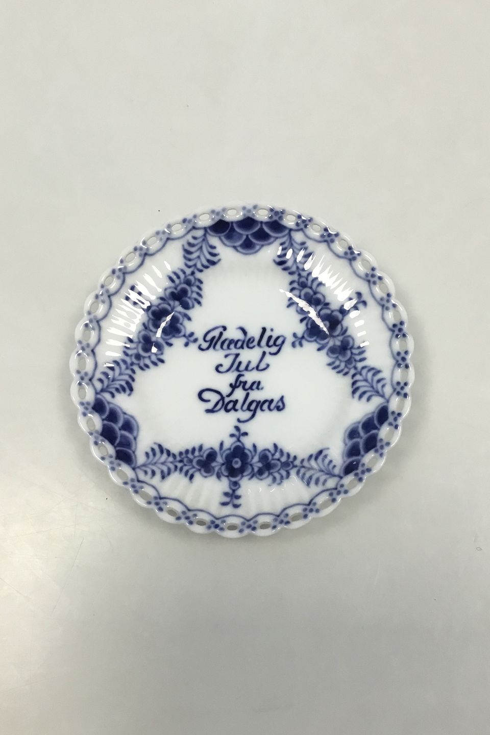 Royal Copenhagen Blue Fluted Full Lace Small Dish with inscription "Merry Christmas from Dalgas". Measures 10.5 cm / 4 9/64 in.