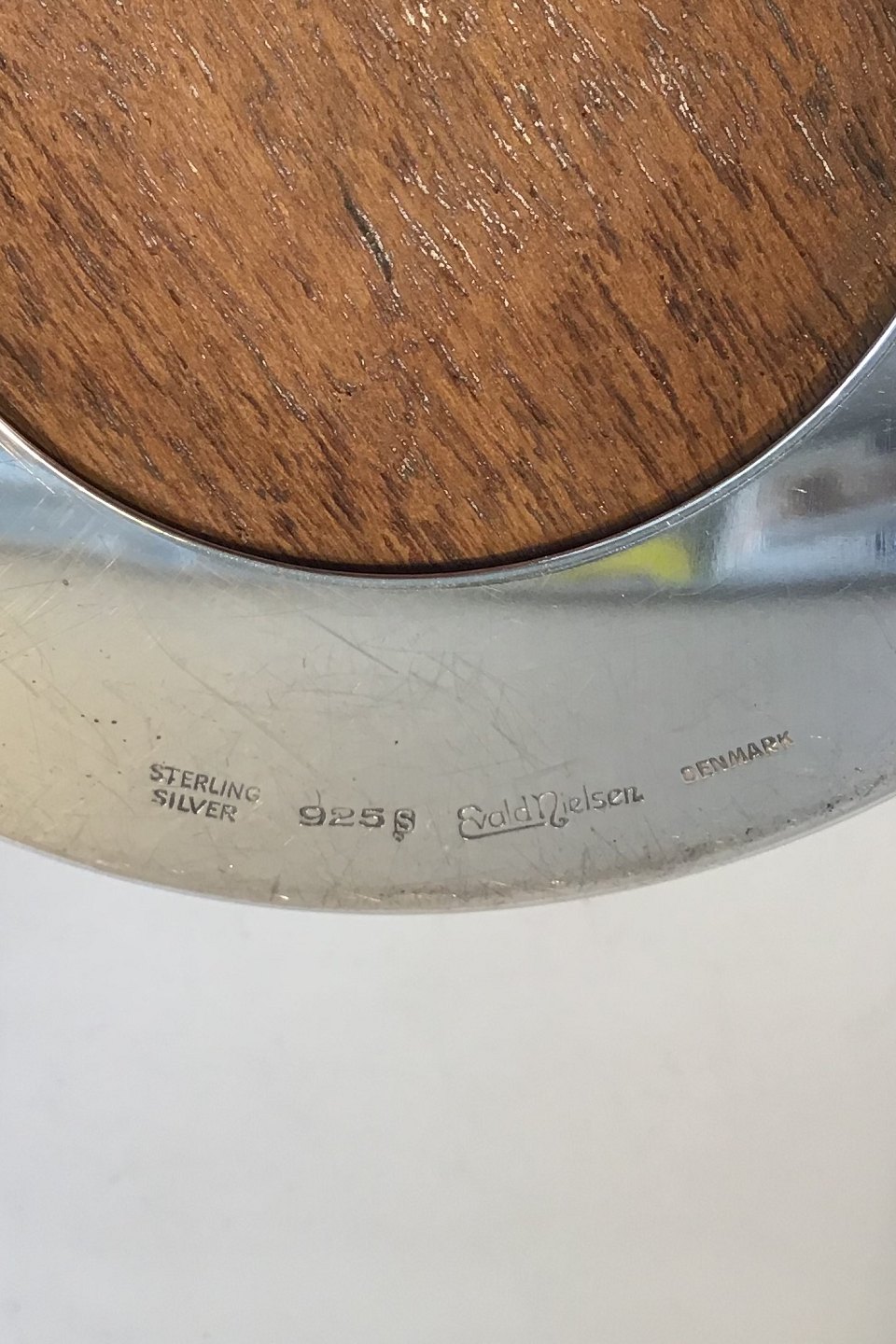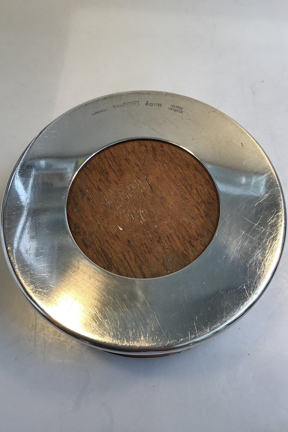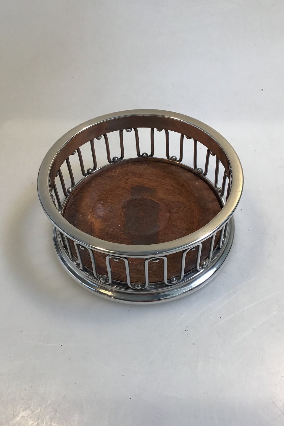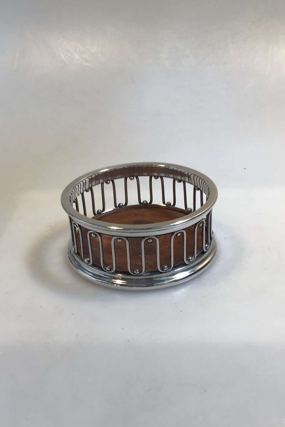 Evald Nielsen Sterling Sølv Flaskebakke Måler Diam 11 cm H 4.5 cm Vægt 197.5 gr Træ indsats
