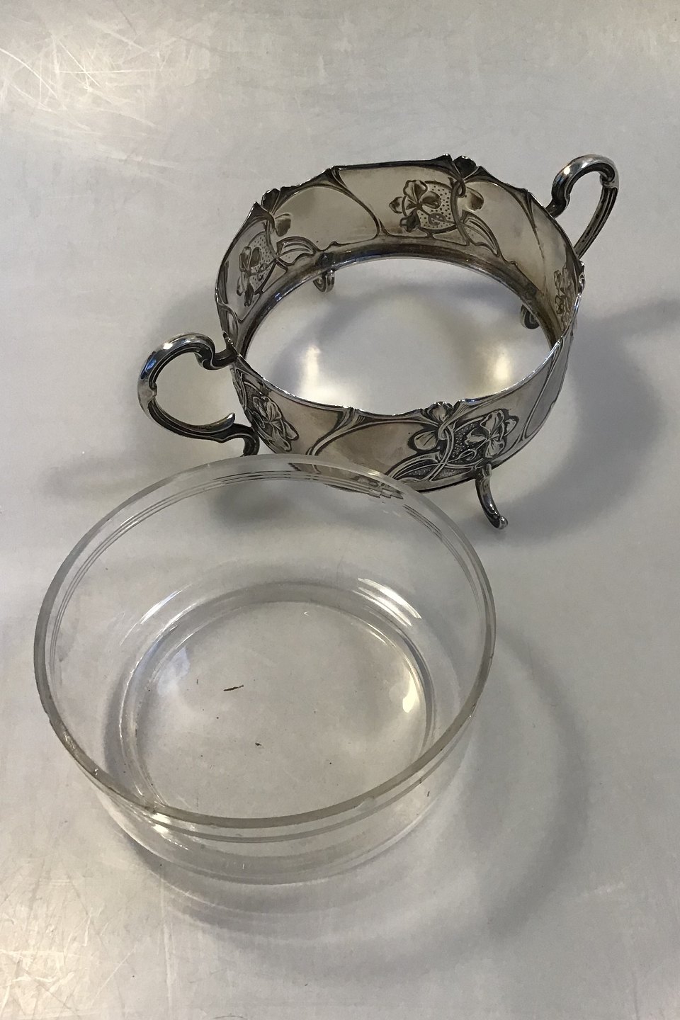 Sølvskål med glasindsats(Afslag) Måler H 7 cm Diam 12 cm Samlet Vægt 247 gr