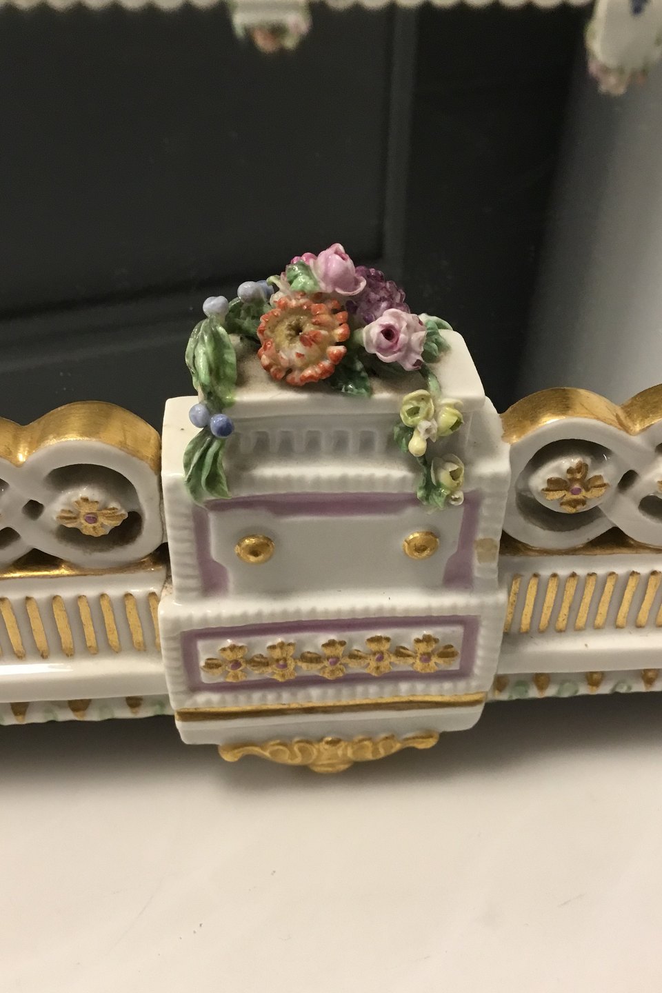 Large Royal Copenhagen Decoration tray with mirror/table garniture. Mirror with discoloration and a few small chips on flowers. Measures 37 cm / 14 9/16 in. x 52 cm / 20 15/32 in.