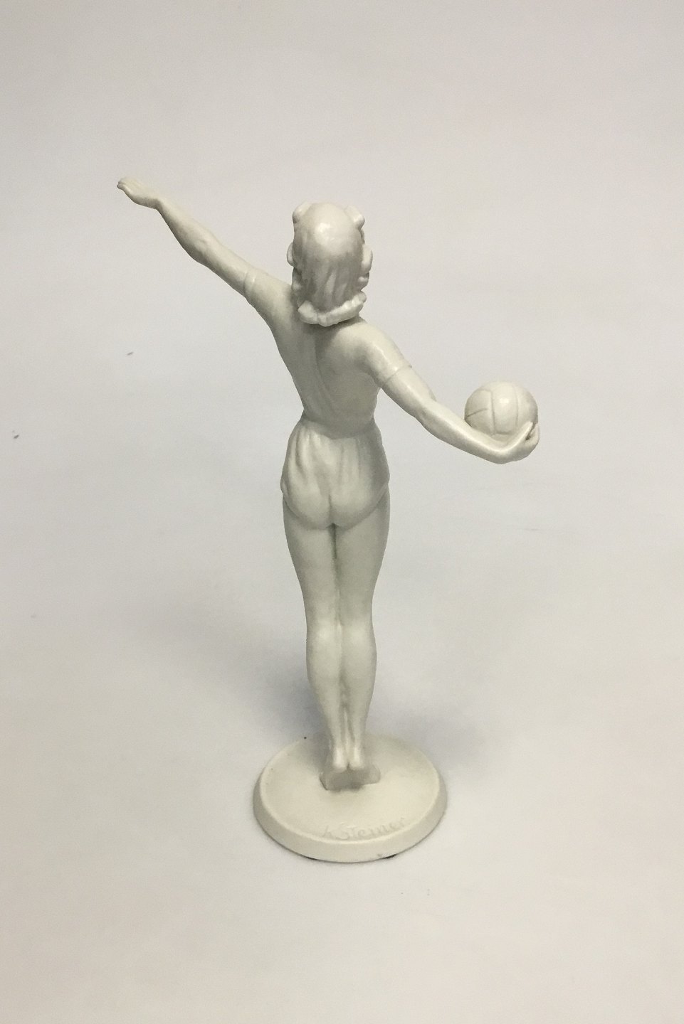 Schaubach Kunst Bisquitfigur af Kvindelig Volleyboldspiller. Signeret K. Steiner. Måler 24 cm