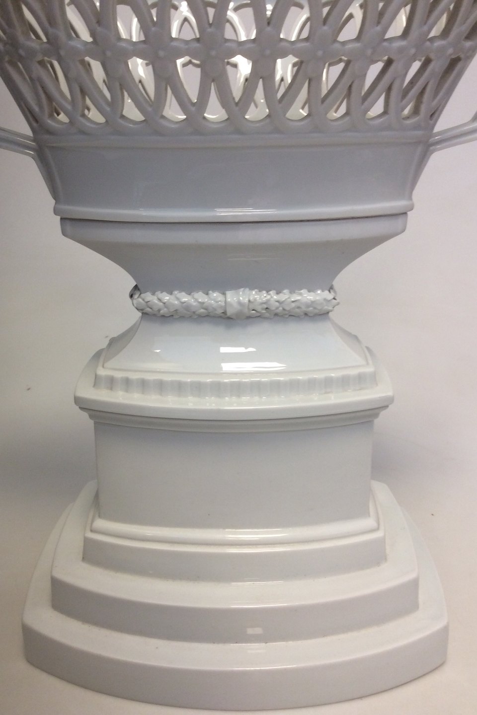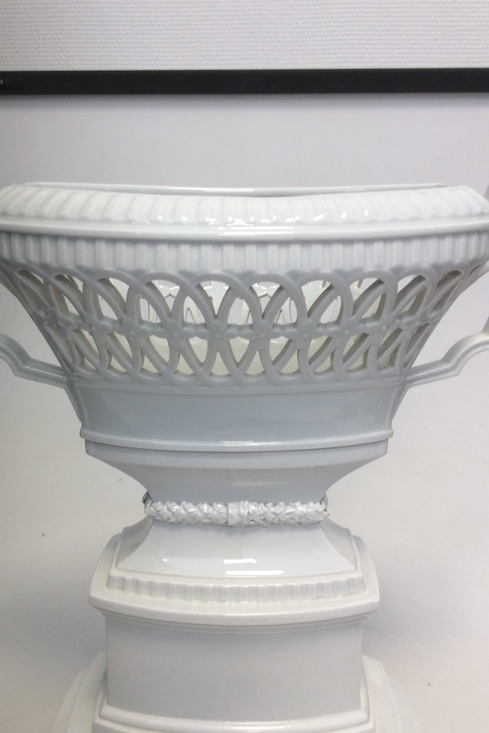 Royal Copenhagen Pearl Pattern / Flora Danica Vase with handles in Blanc de Chine No 12358
