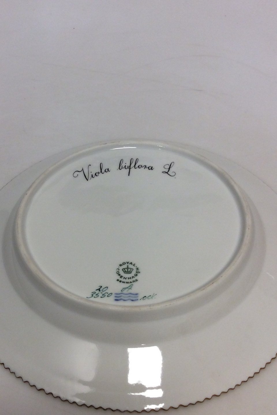 Royal Copenhagen Flora Danica Lunch Plate No 20/3550. Measures 22 cm / 8 21/32 in. 1st Quality. Latin name: "Viola biflora L."