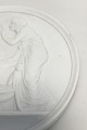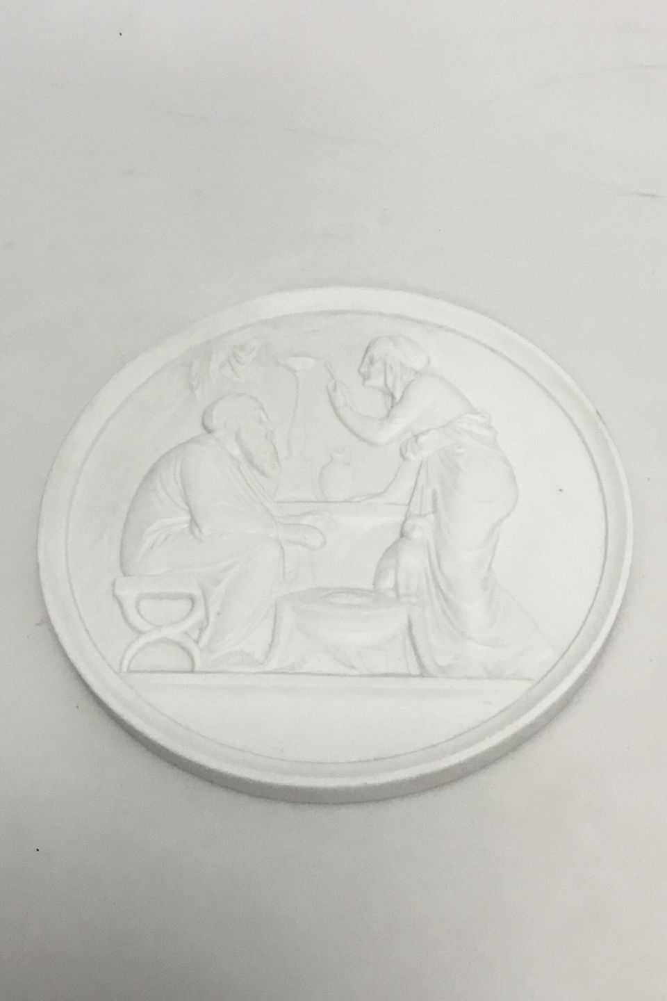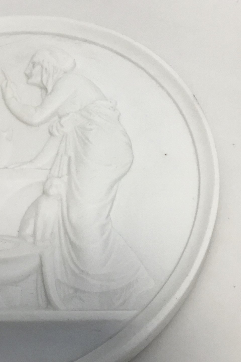 Bing & Grondahl Biscuit Plate No 4003 Thorvaldsen Winter. Measures 14.3 cm dia (5 5/8"). In nice whole condition. Minor burning flaw, see picture.