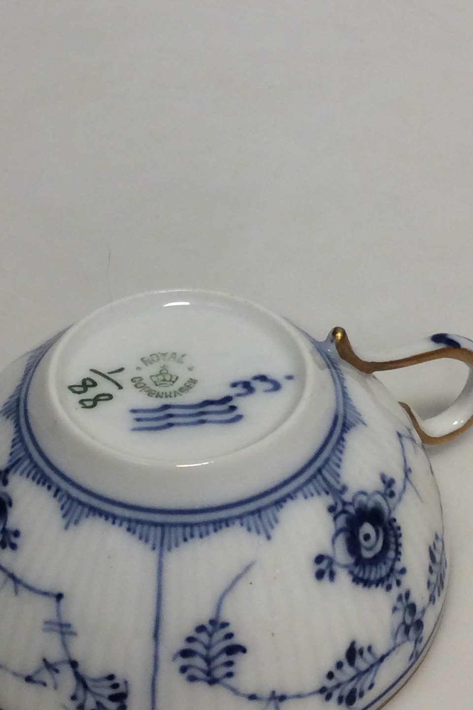 Royal Copenhagen Blue Fluted Plain Coffee Cup with gold. Measures 8cm dia / 3.15"