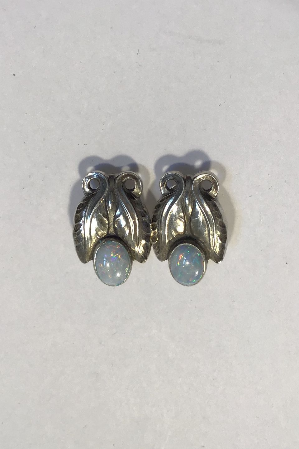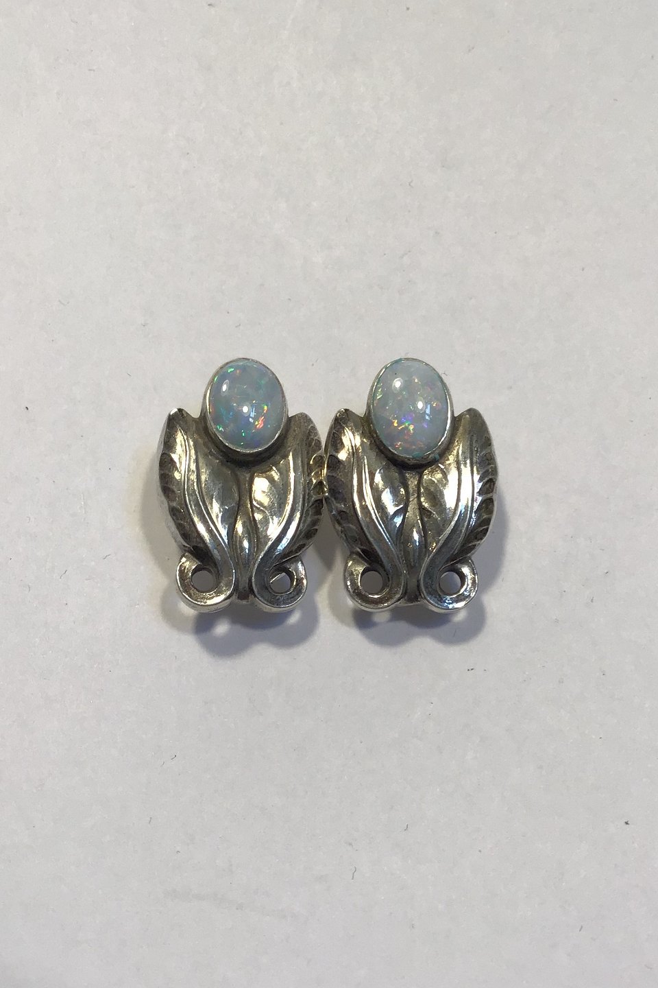 Georg Jensen Sterling Silver Ear Clips No 108 Opal Measures 1.6 cm x 2.3 cm (0 5/8 in x 0 29/32 in))Combined Weight 7.9 gr/0.28 oz