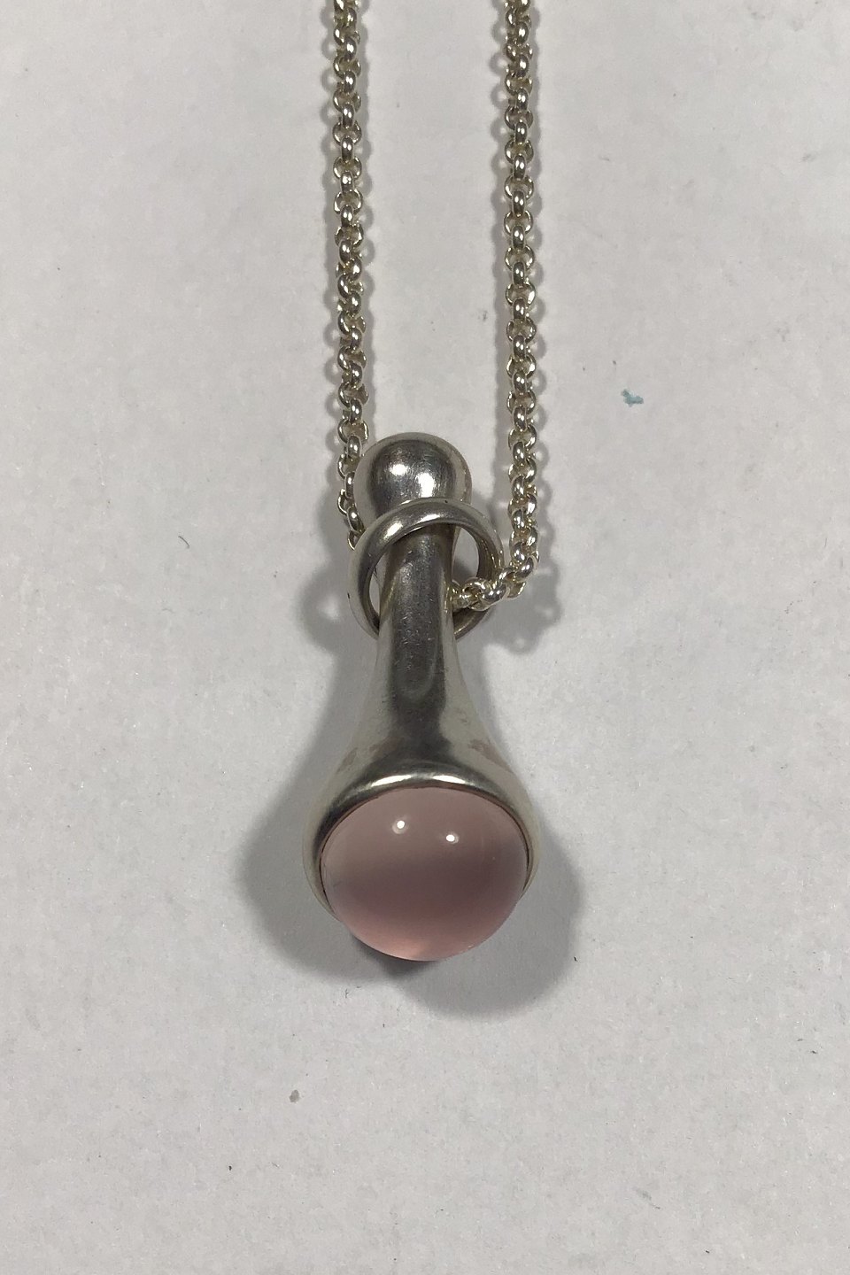 Georg Jensen Sterling Sølv Halskæde med Vedhæng No 453 Droplet Rosa Quartz Samlet vægt 7.7 gr / 0.27 oz L Kæde 46 cm (18 7/64 in) Vedhæng 2.4 cm(0 15/16 in)
