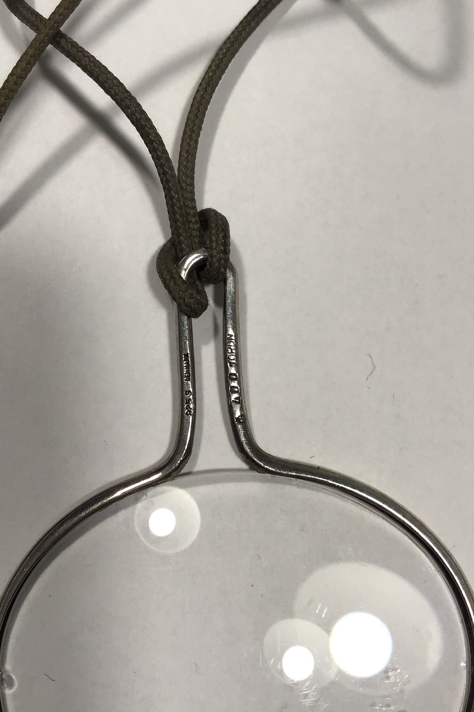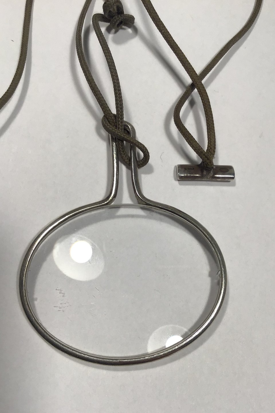 Georg Jensen Lærredsnor med Sterling Sølv Vedhæng No 400(Lup) Torun Måler L 76 cm Lup/Vedhæng 6 cm x 4.8 cm Samlet vægt 14.6 gr (Minimalt afslag)