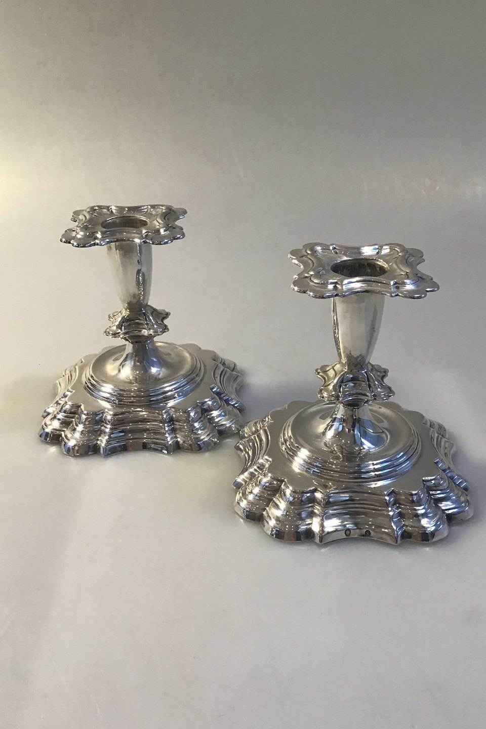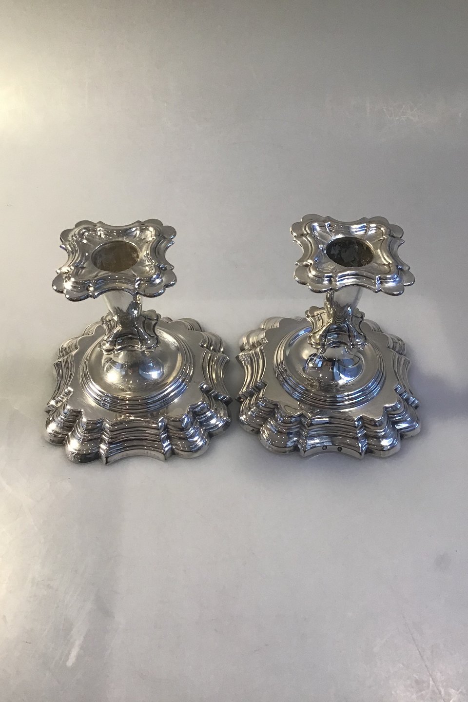Danske Sølv Lysestager (1948)) Måler H 10.5 cm 11 cm x 11 cm Vægt 591.4 gr