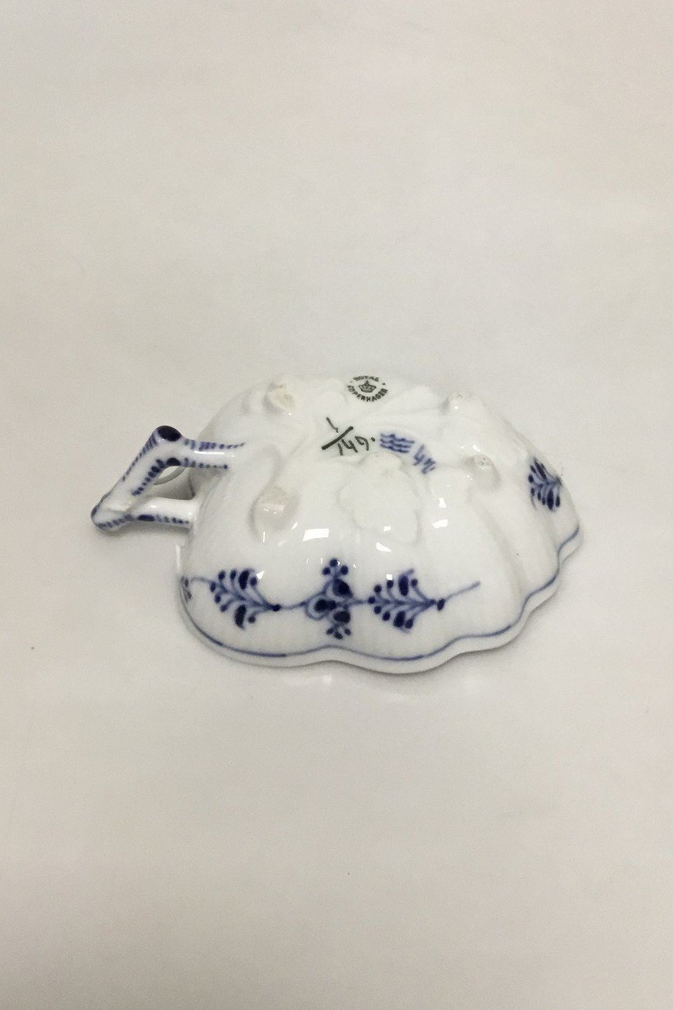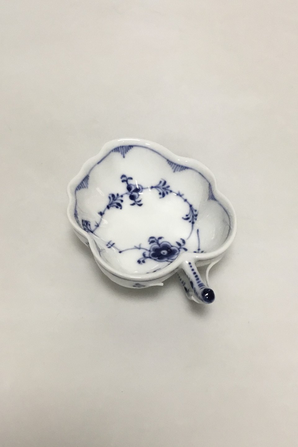 Royal Copenhagen Musselmalet Riflet Bladformet Asiet No 149. Måler 11,5 cm. Afslag på hanken