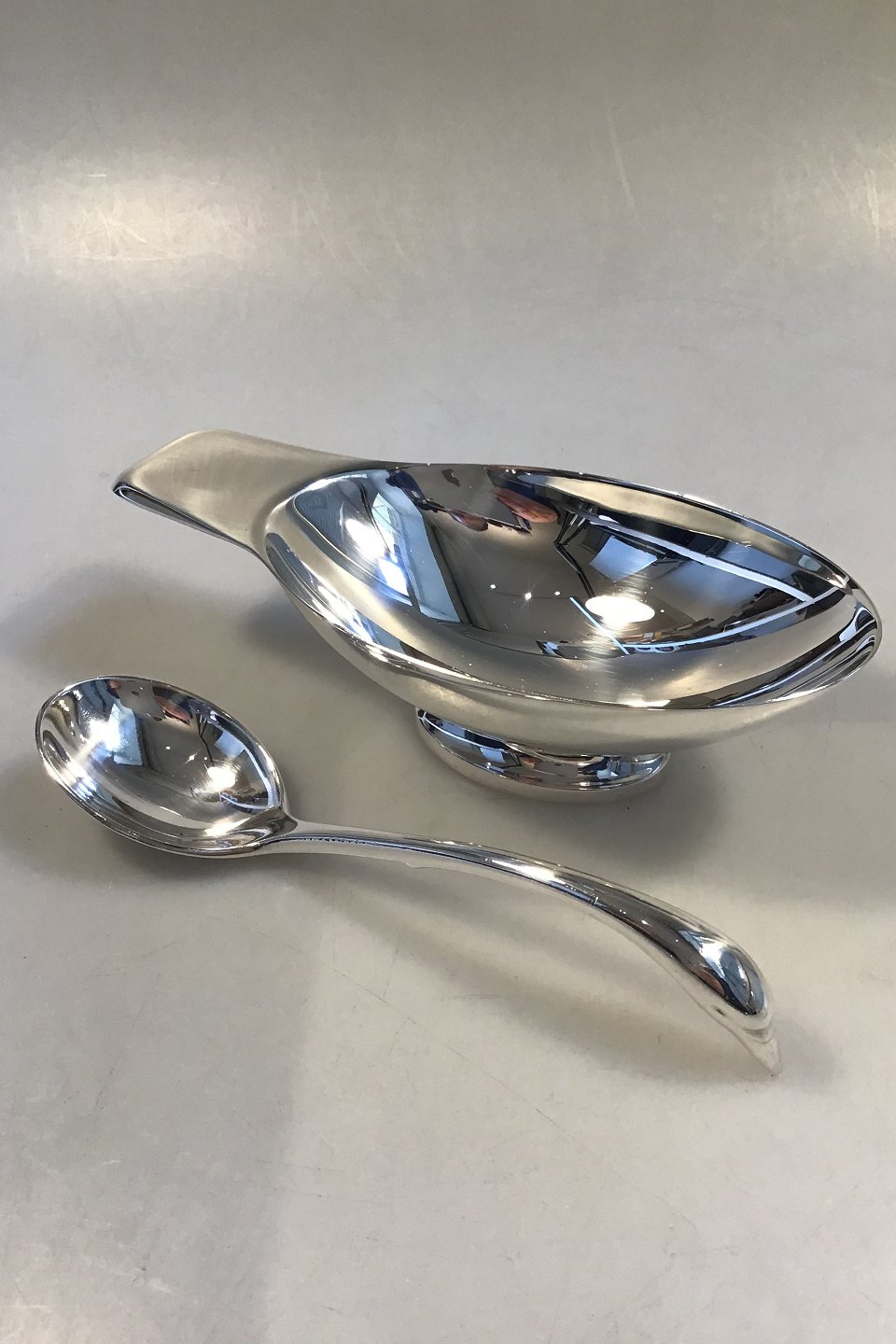 Christofle/ Christian Fjerdingstad Sauciére le cygne Svanesovseskål Forsølvet metal Måler Sovseskål 21.5 cm x 10 cm Ske 20 cm Vægt 427 gr