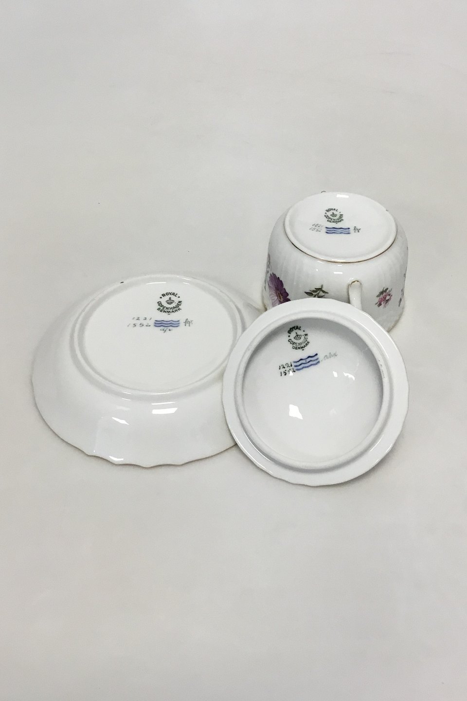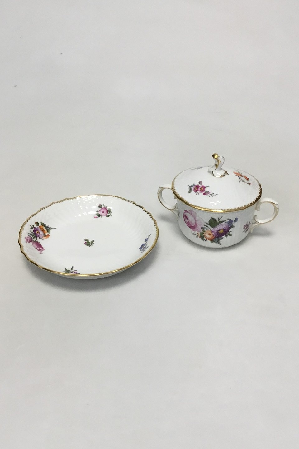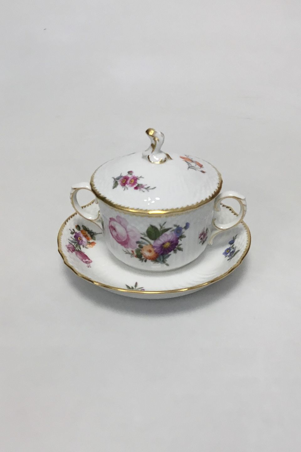Royal Copenhagen Full Saxon Flower Bouillon Cup, lid and saucer No 1552. Cup measures 12.5 cm / 4 29/64 in. and 9 cm / 3 35/64 in. high. Saucer measures 13.6 cm / 5 23/64 in.