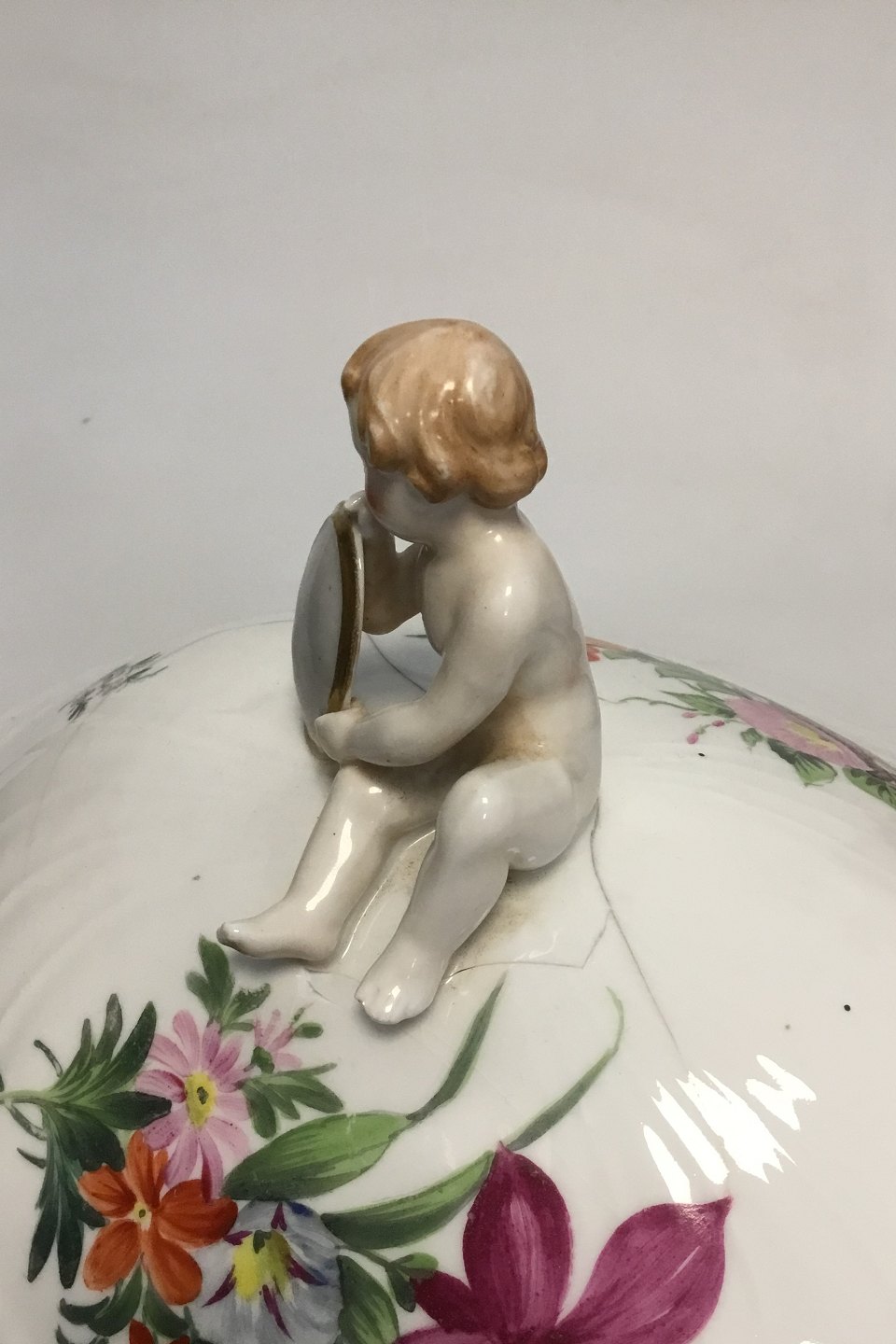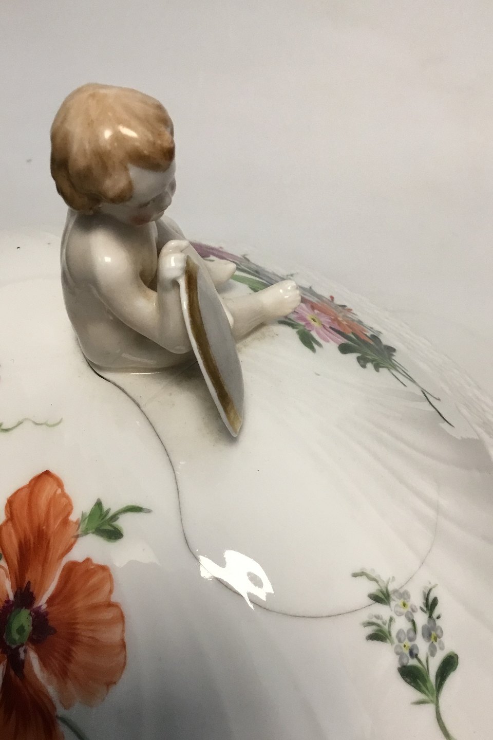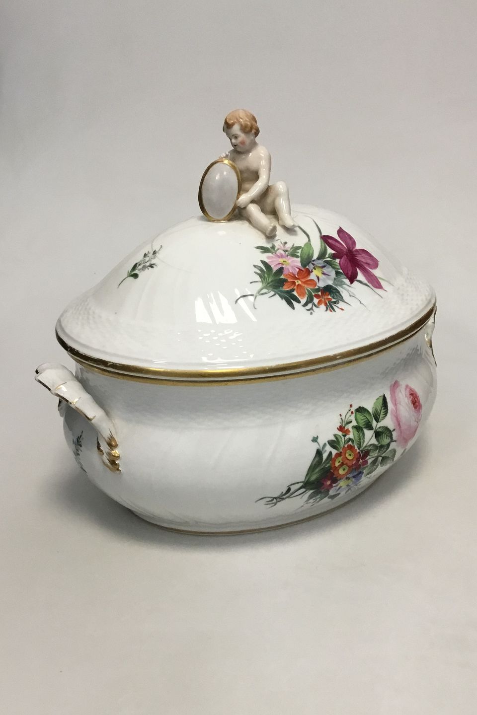 Royal Copenhagen Light Saxon Flower Large oval Tureen. Old with some wear on the gold and cracks on the Lid. Measures 37 cm / 14 9/16 in.