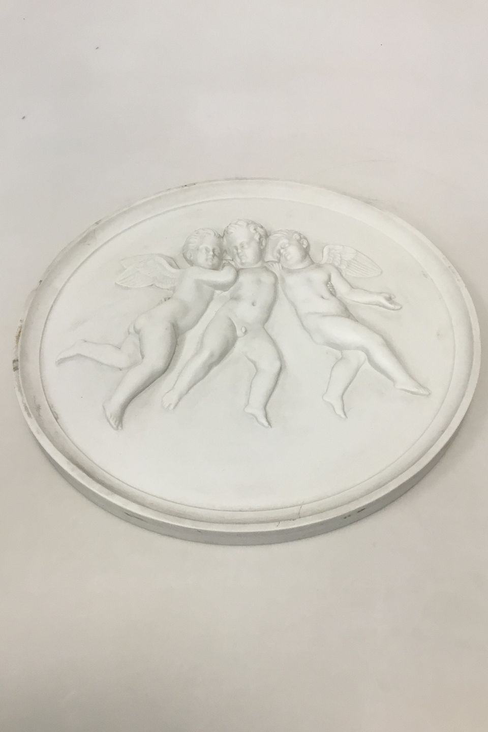 Royal Copenhagen Bisque Plate Three Flying Engels No 89. Copy from 1842 by Th. Mule after Thorvaldsens original from Rom 1805-07. Measures 32.5 cm / 12 51/64 in.