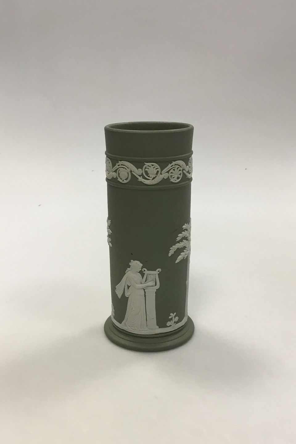 Wedgewood cylindrical Vase decorated with harp-playing goddesses. Measures 16.5 cm / 6 1/2 in.