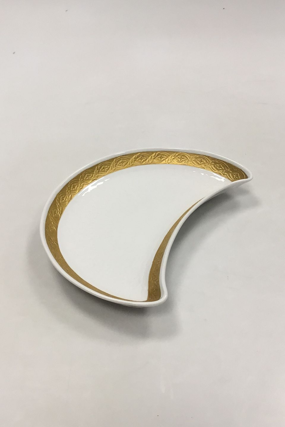 Royal Copenhagen Guld Vifte Halvmåneformet Fad No. 11551. Måler 21 cm (8 17/64 in.)