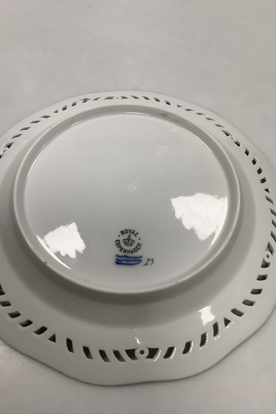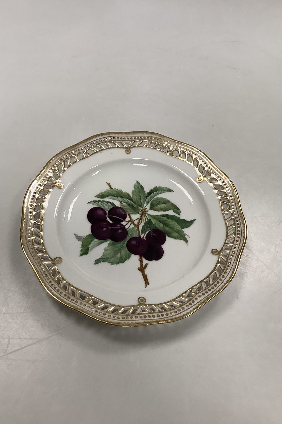 Royal Copenhagen Flora Danica Frugttallerken No 429/3584. Måler 22,2 cm. 1. Sortering. Med gennembrudt kant.